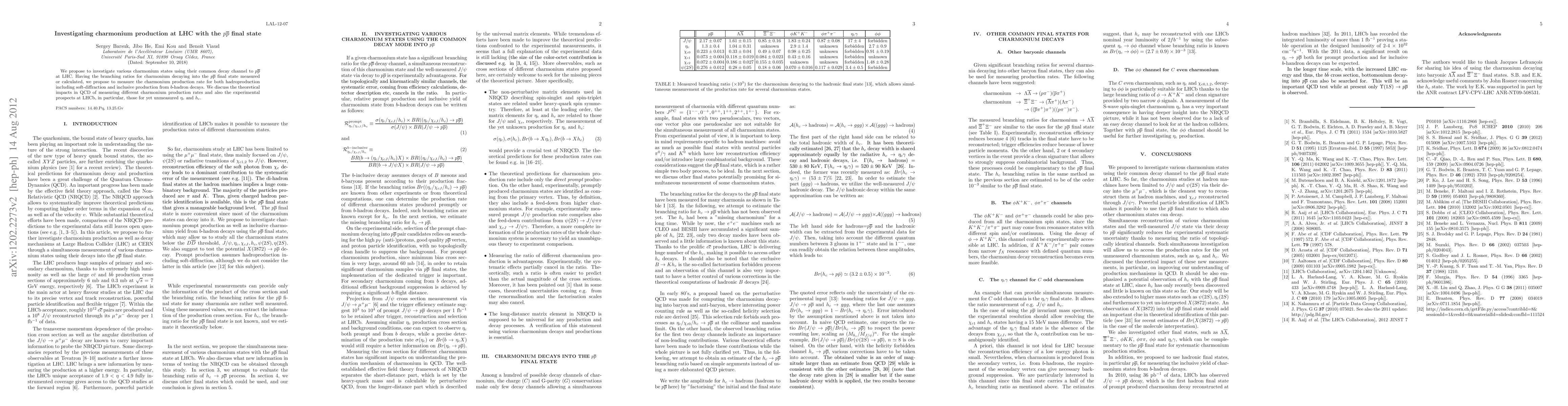 This paper investigates charmonium production in proton-antiproton collisions at the LHC, focusing on the p pbar decay channel. It aims to measure production rates for various charmonium states, including the yet unmeasured eta_c and h_c, and discusses the theoretical and experimental implications of these measurements for QCD and LHCb.