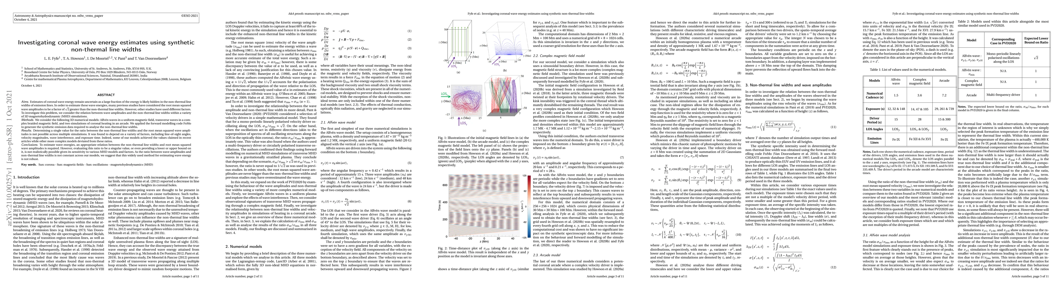 Aims. Estimates of coronal wave energy remain uncertain as a large fraction of the energy is likely hidden in the non-thermal line widths of emission lines. In order to estimate these wave energies, many previous studies have considered the root mean squared wave amplitudes to be a factor of $\sqrt{2}$ greater than the non-thermal line widths. However, other studies have used different factors. To investigate this problem, we consider the relation between wave amplitudes and the non-thermal line widths within a variety of 3D magnetohydrodynamic (MHD) simulations. Methods. We consider the following 3D numerical models: Alfv\'en waves in a uniform magnetic field, transverse waves in a complex braided magnetic field, and two simulations of coronal heating in an arcade. We applied the forward modelling code FoMo to generate the synthetic emission data required to analyse the non-thermal line widths. Results. Determining a single value for the ratio between the non-thermal line widths and the root mean squared wave amplitudes is not possible across multiple simulations. It was found to depend on a variety of factors, including line-of-sight angles, velocity magnitudes, wave interference, and exposure time. Indeed, some of our models achieved the values claimed in recent articles while other more complex models deviated from these ratios. Conclusions. To estimate wave energies, an appropriate relation between the non-thermal line widths and root mean squared wave amplitudes is required. However, evaluating this ratio to be a singular value, or even providing a lower or upper bound on it, is not realistically possible given its sensitivity to various MHD models and factors. As the ratio between wave amplitudes and non-thermal line widths is not constant across our models, we suggest that this widely used method for estimating wave energy is not robust.