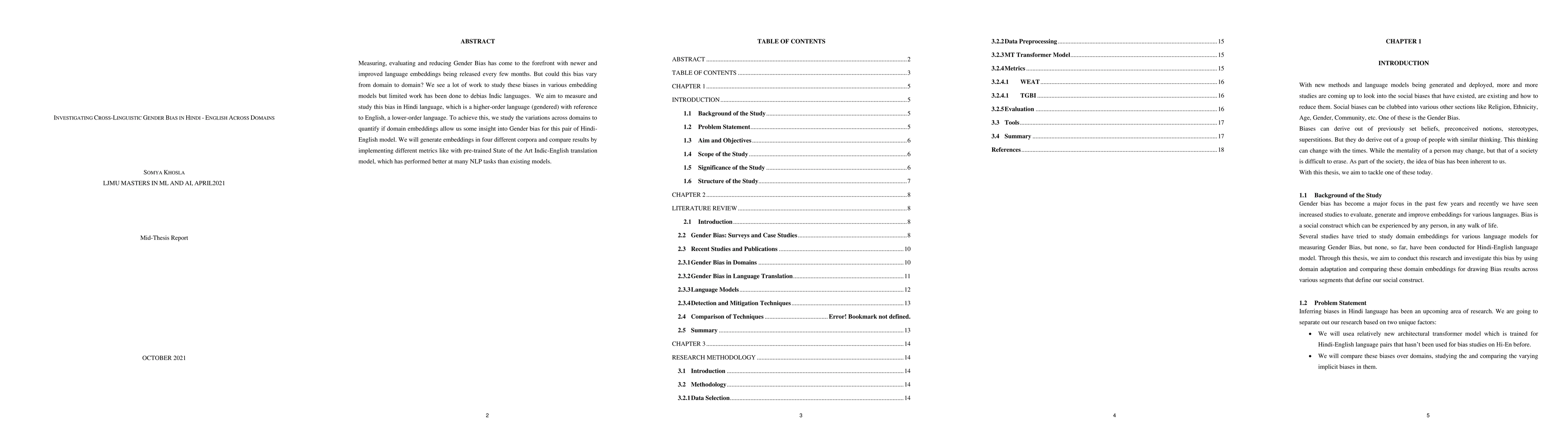 Measuring, evaluating and reducing Gender Bias has come to the forefront with newer and improved language embeddings being released every few months. But could this bias vary from domain to domain? We see a lot of work to study these biases in various embedding models but limited work has been done to debias Indic languages. We aim to measure and study this bias in Hindi language, which is a higher-order language (gendered) with reference to English, a lower-order language. To achieve this, we study the variations across domains to quantify if domain embeddings allow us some insight into Gender bias for this pair of Hindi-English model. We will generate embeddings in four different corpora and compare results by implementing different metrics like with pre-trained State of the Art Indic-English translation model, which has performed better at many NLP tasks than existing models.