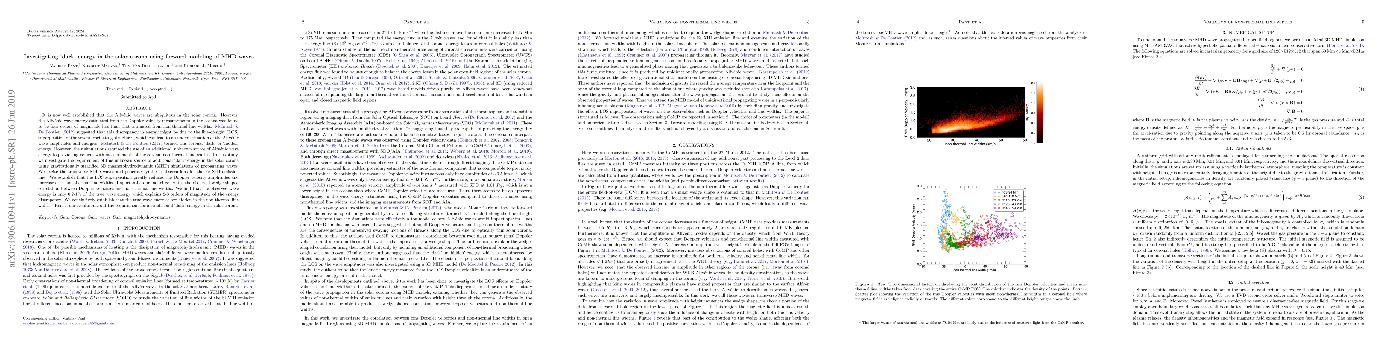 This study uses 3D MHD simulations to investigate the discrepancy in Alfv\'enic wave energy in the solar corona, termed `dark' energy. The findings show that line-of-sight superposition of waves explains the observed energy discrepancy without requiring an additional `dark' energy source.