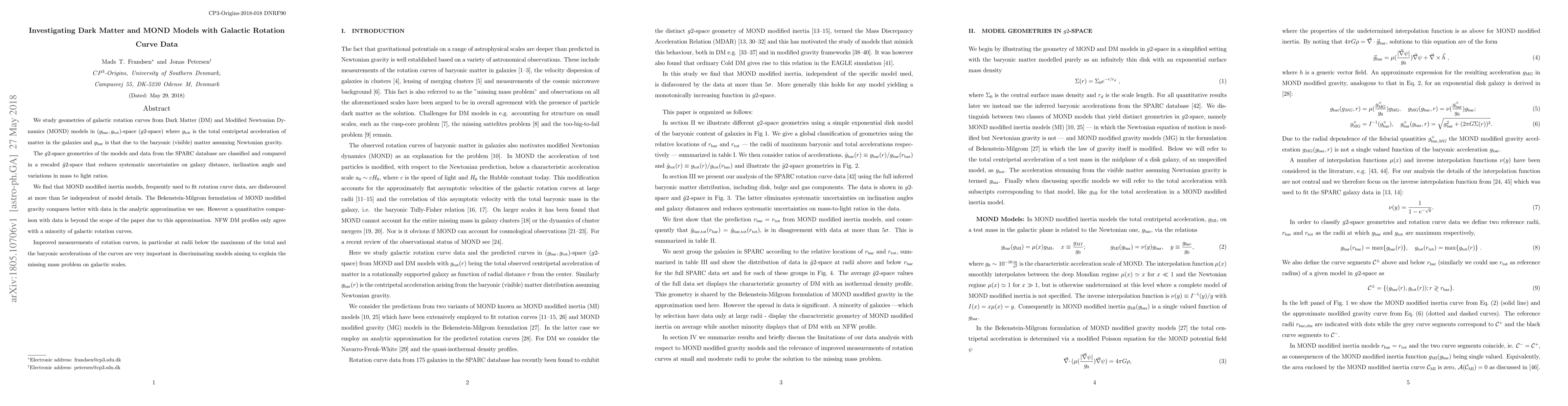 This paper investigates galactic rotation curves using Dark Matter and Modified Newtonian Dynamics (MOND) models in $g2$-space, finding that MOND models are more favorable than modified inertia models, while NFW DM profiles only fit a minority of curves. Improved rotation curve measurements, especially at lower radii, are crucial for better model discrimination.
