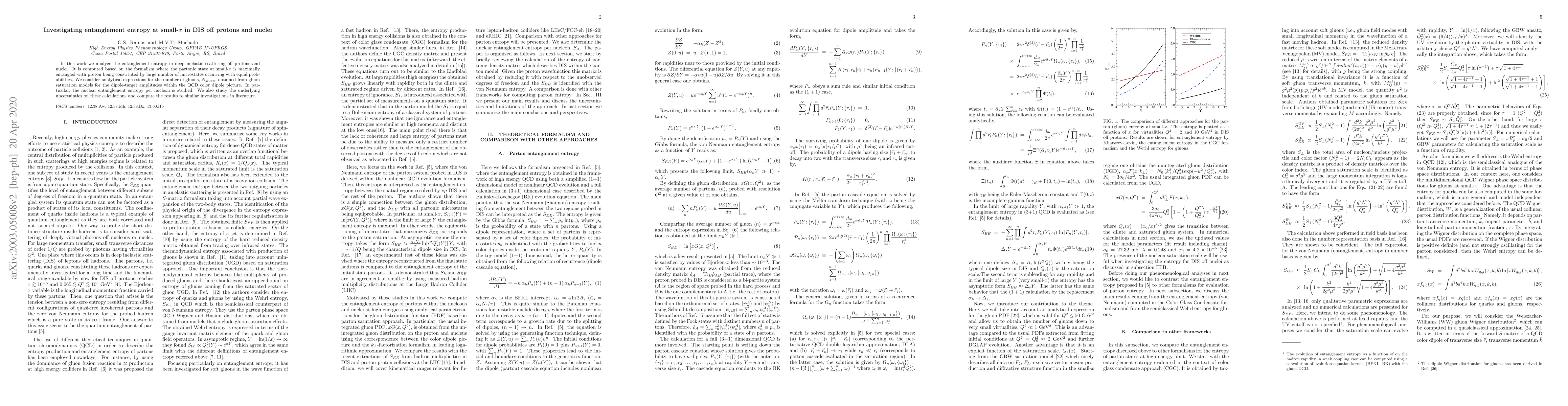 This paper investigates the entanglement entropy in deep inelastic scattering (DIS) off protons and nuclei at small-x, focusing on the maximally entangled partonic state. It uses gluon saturation models to derive analytical expressions for the number of gluons and examines the nuclear entanglement entropy per nucleon, comparing results and uncertainties to previous studies.