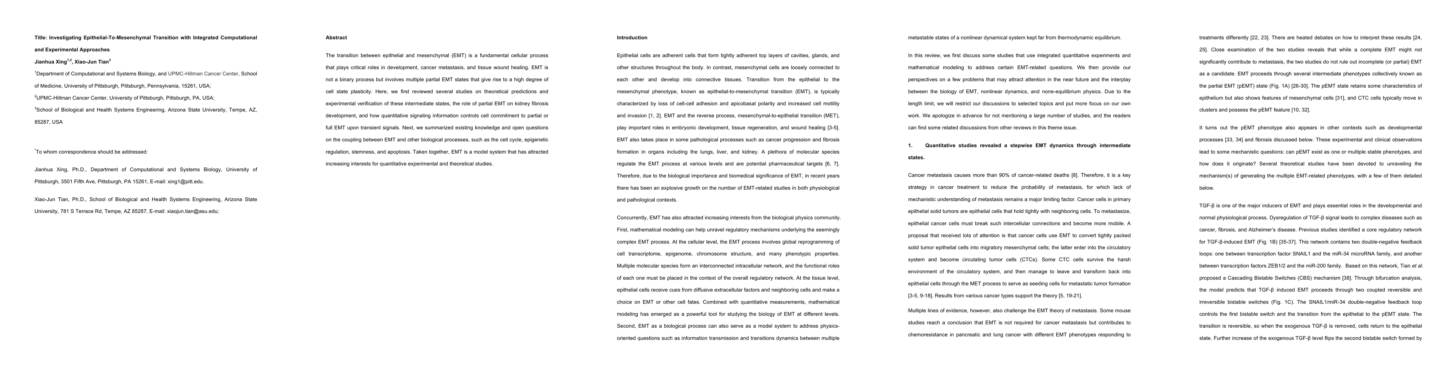This paper reviews the complex process of epithelial-to-mesenchymal transition (EMT) and its intermediate states, emphasizing its roles in development, cancer metastasis, and tissue healing. It highlights the integration of computational and experimental approaches to understand the coupling of EMT with other biological processes.