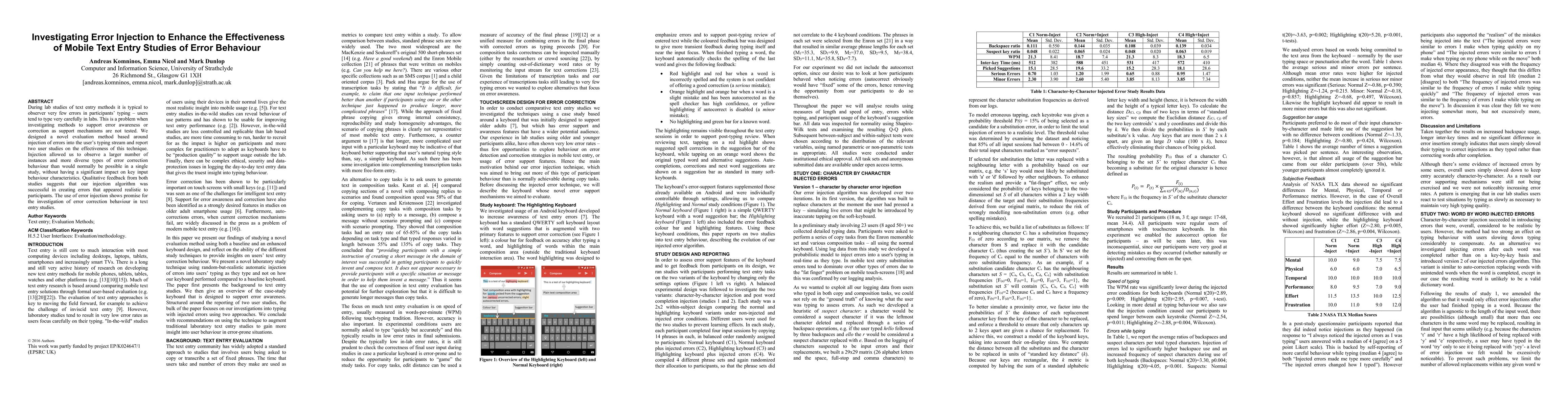 During lab studies of text entry methods it is typical to observer very few errors in participants' typing - users tend to type very carefully in labs. This is a problem when investigating methods to support error awareness or correction as support mechanisms are not tested. We designed a novel evaluation method based around injection of errors into the users' typing stream and report two user studies on the effectiveness of this technique. Injection allowed us to observe a larger number of instances and more diverse types of error correction behaviour than would normally be possible in a single study, without having a significant impact on key input behaviour characteristics. Qualitative feedback from both studies suggests that our injection algorithm was successful in creating errors that appeared realistic to participants. The use of error injection shows promise for the investigation of error correction behaviour in text entry studies.