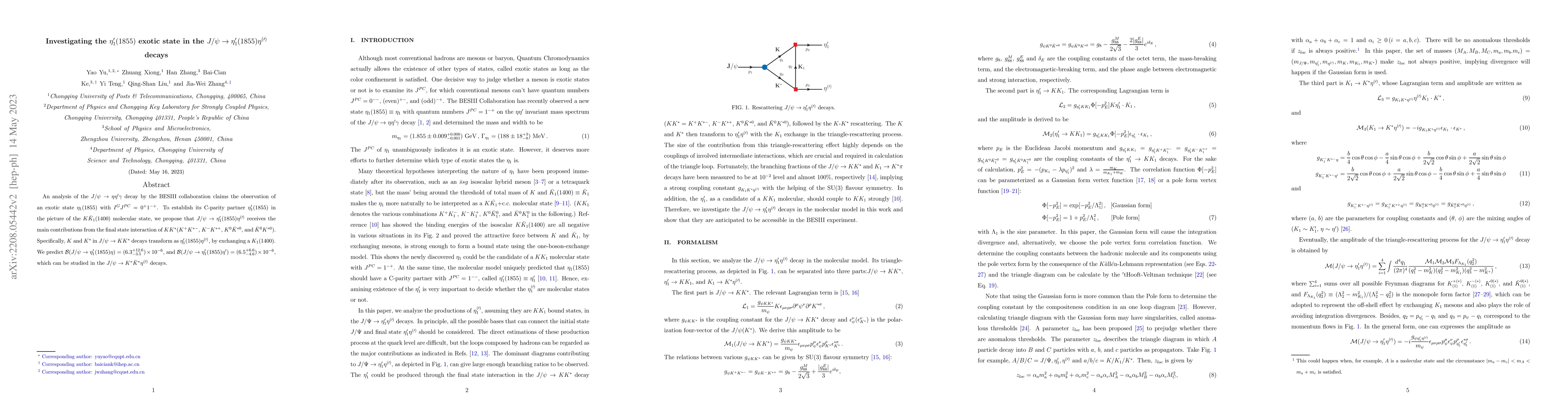 The BESIII collaboration observed an exotic state $\eta_1(1855)$ in $J/\psi$ decays, prompting an investigation into its C-parity partner $\eta^\prime_{1}(1855)$. The study proposes that $J/\psi\to\eta^\prime_{1}(1855)\eta^{(\prime)}$ decays are mainly influenced by final state interactions involving $KK^*$ pairs, suggesting a molecular state interpretation. Predicted branching ratios for these decays are ${\cal B}(J/\psi\to \eta^{\prime}_1(1855)\eta)=(6.3^{+12.6}_{-3.5})\times 10^{-6}$ and ${\cal B}(J/\psi\to \eta^{\prime}_1(1855)\eta^{\prime})=(6.5^{+6.6}_{-4.6})\times 10^{-6}$.
