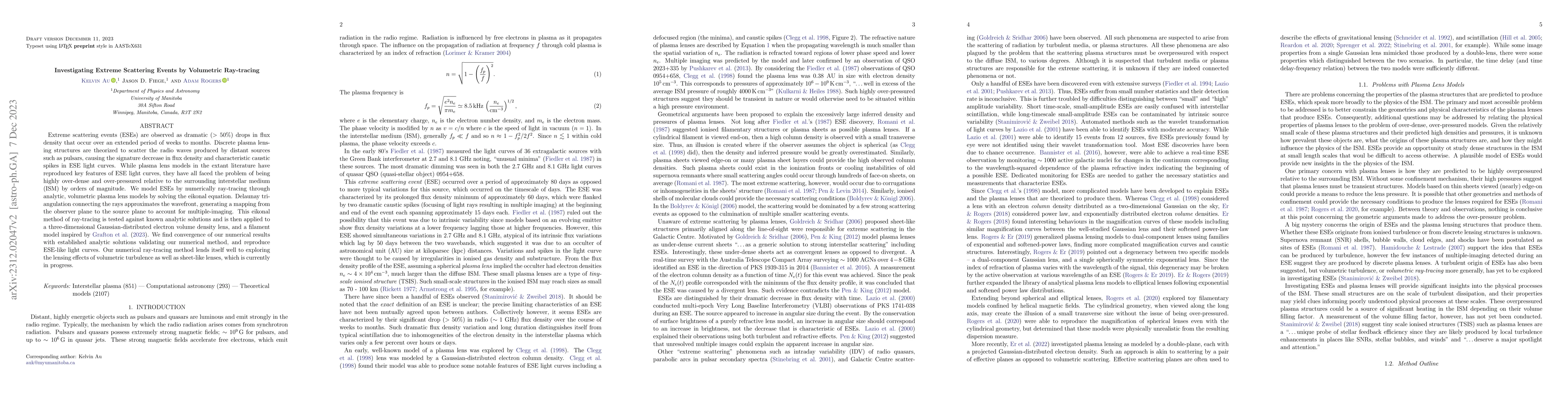 This paper investigates extreme scattering events (ESEs) using volumetric ray-tracing to model plasma lensing structures. The authors validate their eikonal-based ray-tracing method against known solutions and apply it to Gaussian-distributed and filament models, successfully reproducing ESE-like light curves.