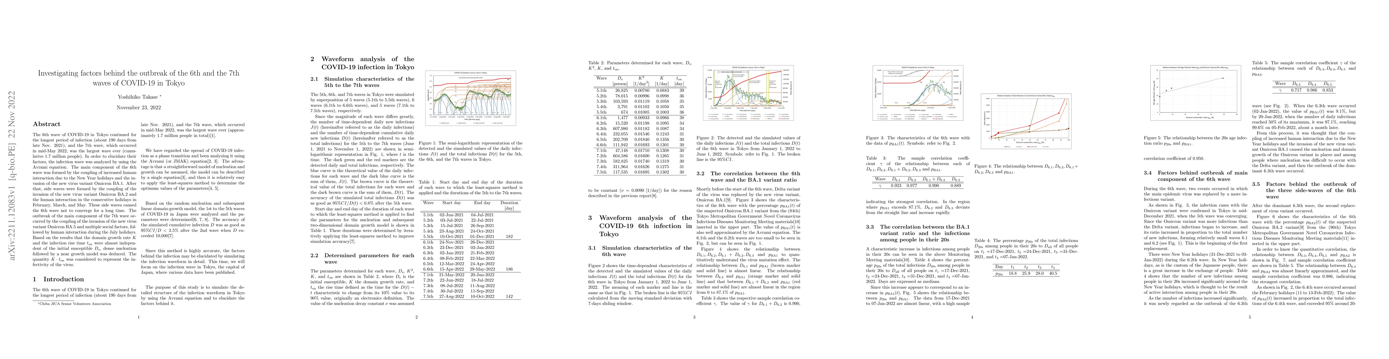 This study analyzes the factors behind Tokyo's 6th and 7th COVID-19 waves using the Avrami equation, revealing that the 6th wave's prolonged duration was due to increased human interaction and the Omicron BA.1 variant, while the 7th wave's peak was driven by the Omicron BA.5 variant and multiple social factors. The study concludes that the infectivity of the virus is represented by the product of the domain growth rate and infection rise time.