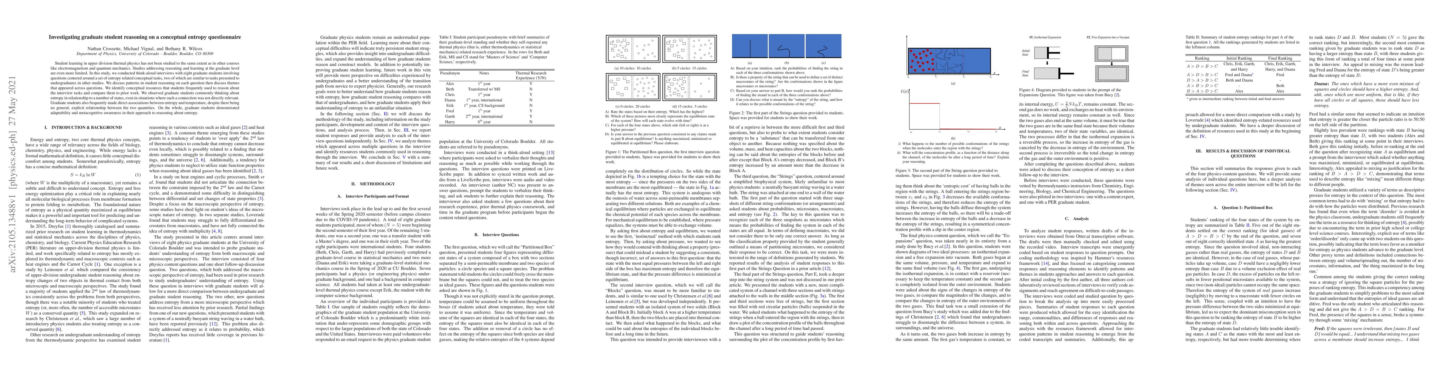 This study investigates graduate students' reasoning on entropy-related conceptual tasks through think-aloud interviews, revealing frequent associations between entropy and temperature, and adaptability in reasoning despite contextual irrelevance. Graduate students demonstrated metacognitive awareness and used conceptual resources differently compared to prior undergraduate studies.