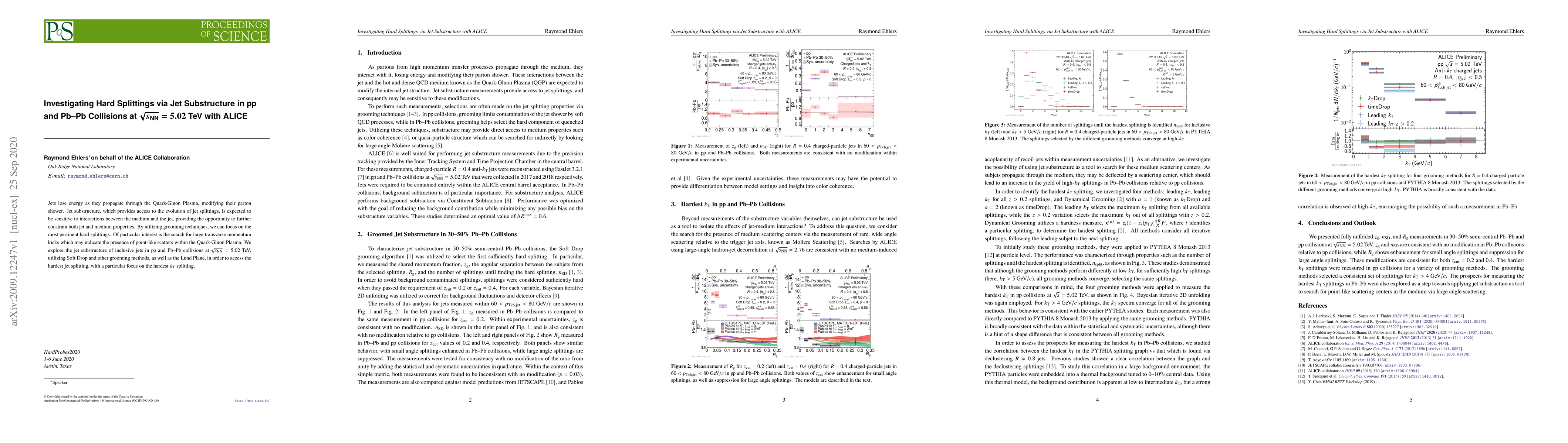Jets lose energy as they propagate through the Quark-Gluon Plasma, modifying their parton shower. Jet substructure, which provides access to the evolution of jet splittings, is expected to be sensitive to interactions between the medium and the jet, providing the opportunity to further constrain both jet and medium properties. By utilizing grooming techniques, we can focus on the most pertinent hard splittings. Of particular interest is the search for large transverse momentum kicks which may indicate the presence of point-like scatters within the Quark-Gluon Plasma. We explore the jet substructure of inclusive jets in pp and Pb-Pb collisions at $\sqrt{s_{\mathrm{NN}}} = 5.02$ TeV, utilizing Soft Drop and other grooming methods, as well as the Lund Plane, in order to access the hardest jet splitting, with a particular focus on the hardest $k_{\mathrm{T}}$ splitting.