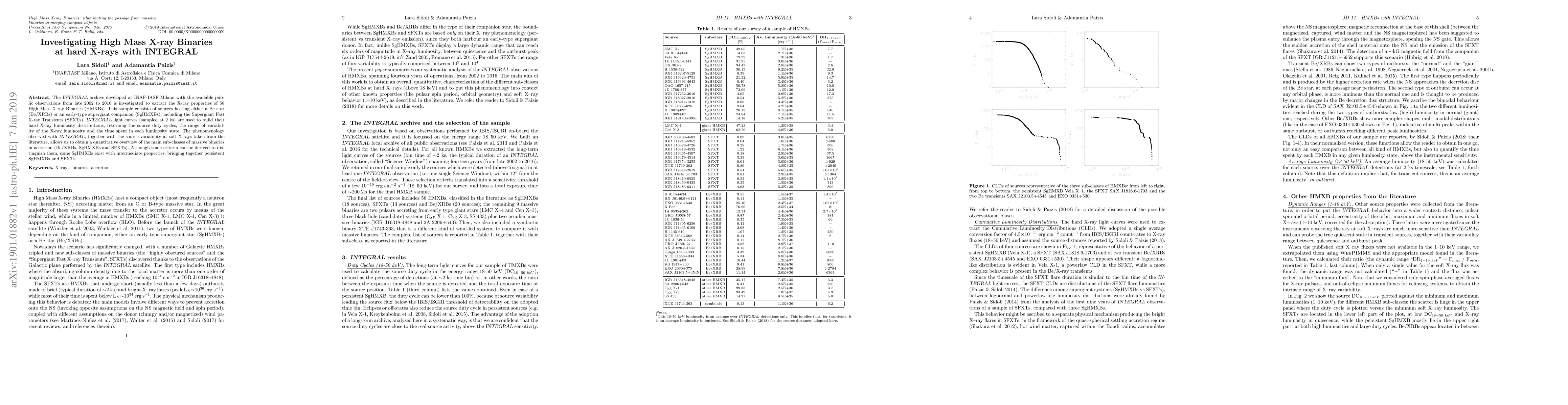 The INTEGRAL archive developed at INAF-IASF Milano with the available public observations from late 2002 to 2016 is investigated to extract the X-ray properties of 58 High Mass X-ray Binaries (HMXBs). This sample consists of sources hosting either a Be star (Be/XRBs) or an early-type supergiant companion (SgHMXBs), including the Supergiant Fast X-ray Transients (SFXTs). INTEGRAL light curves (sampled at 2 ks) are used to build their hard X-ray luminosity distributions, returning the source duty cycles, the range of variability of the X-ray luminosity and the time spent in each luminosity state. The phenomenology observed with INTEGRAL, together with the source variability at soft X-rays taken from the literature, allows us to obtain a quantitative overview of the main sub-classes of massive binaries in accretion (Be/XRBs, SgHMXBs and SFXTs). Although some criteria can be derived to distinguish them, some SgHMXBs exist with intermediate properties, bridging together persistent SgHMXBs and SFXTs.