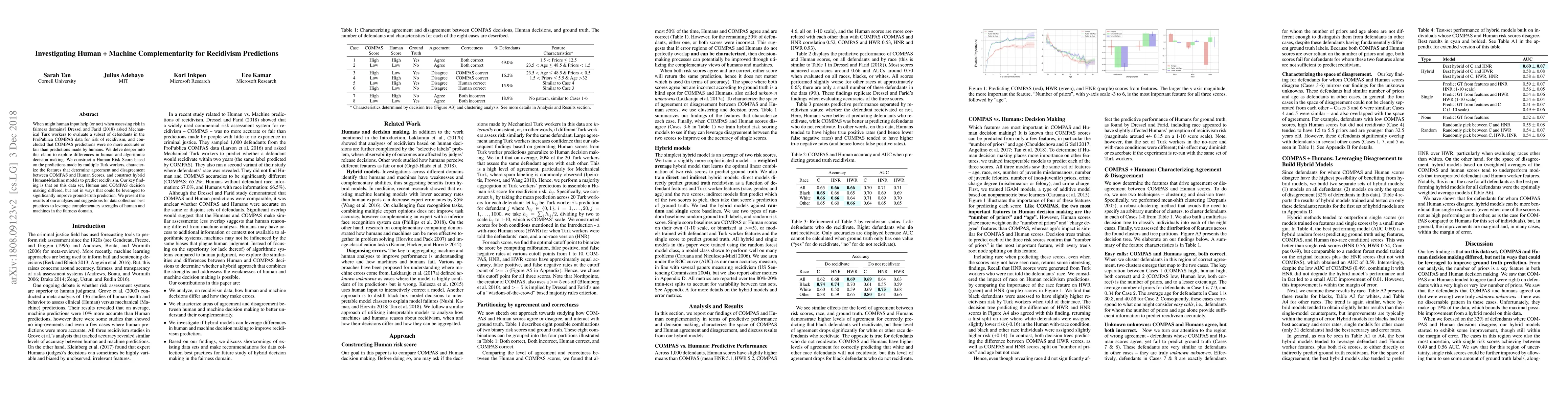 When might human input help (or not) when assessing risk in fairness domains? Dressel and Farid (2018) asked Mechanical Turk workers to evaluate a subset of defendants in the ProPublica COMPAS data for risk of recidivism, and concluded that COMPAS predictions were no more accurate or fair than predictions made by humans. We delve deeper into this claim to explore differences in human and algorithmic decision making. We construct a Human Risk Score based on the predictions made by multiple Turk workers, characterize the features that determine agreement and disagreement between COMPAS and Human Scores, and construct hybrid Human+Machine models to predict recidivism. Our key finding is that on this data set, Human and COMPAS decision making differed, but not in ways that could be leveraged to significantly improve ground-truth prediction. We present the results of our analyses and suggestions for data collection best practices to leverage complementary strengths of human and machines in the fairness domain.