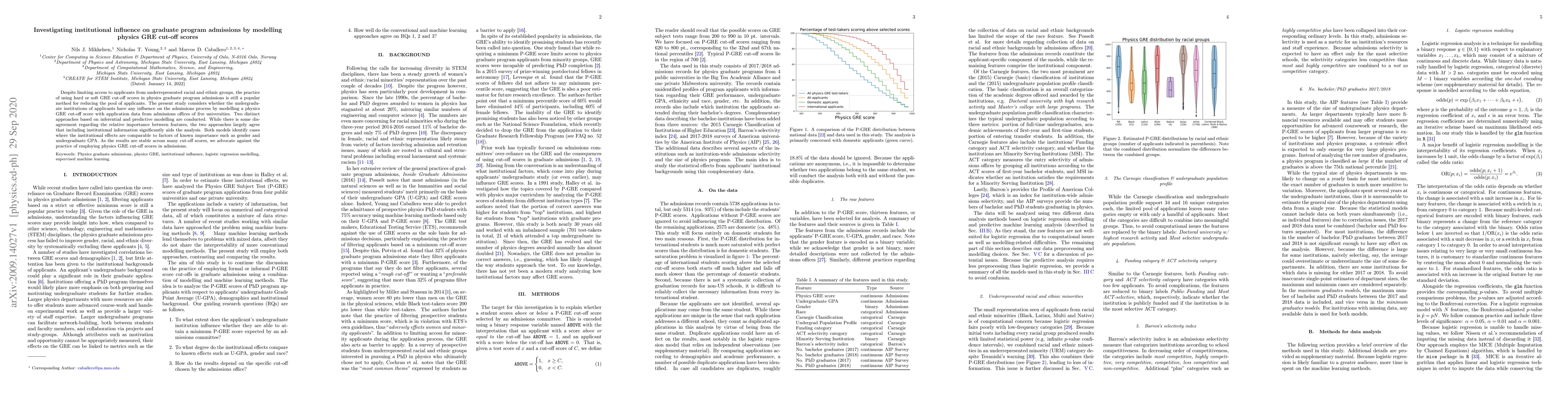 This study investigates the influence of undergraduate institutions on physics graduate program admissions by modelling physics GRE cut-off scores. Both inferential and predictive modelling reveal that institutional information significantly impacts admissions, suggesting that GRE cut-off scores may unfairly limit access for underrepresented groups.