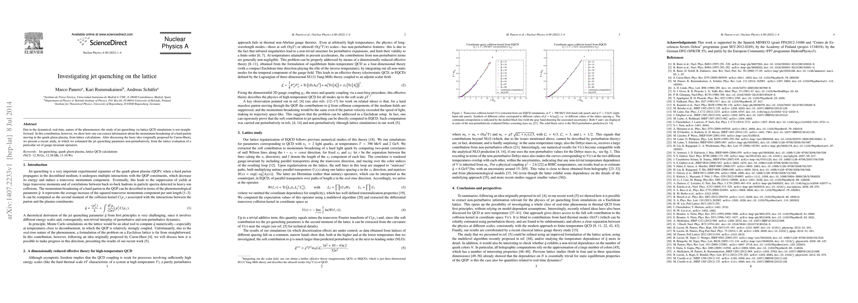 This paper investigates jet quenching using lattice QCD simulations, demonstrating a method to extract information on parton momentum broadening in quark-gluon plasma. The authors estimate the jet quenching parameter non-perturbatively via lattice evaluation of specific gauge-invariant operators.