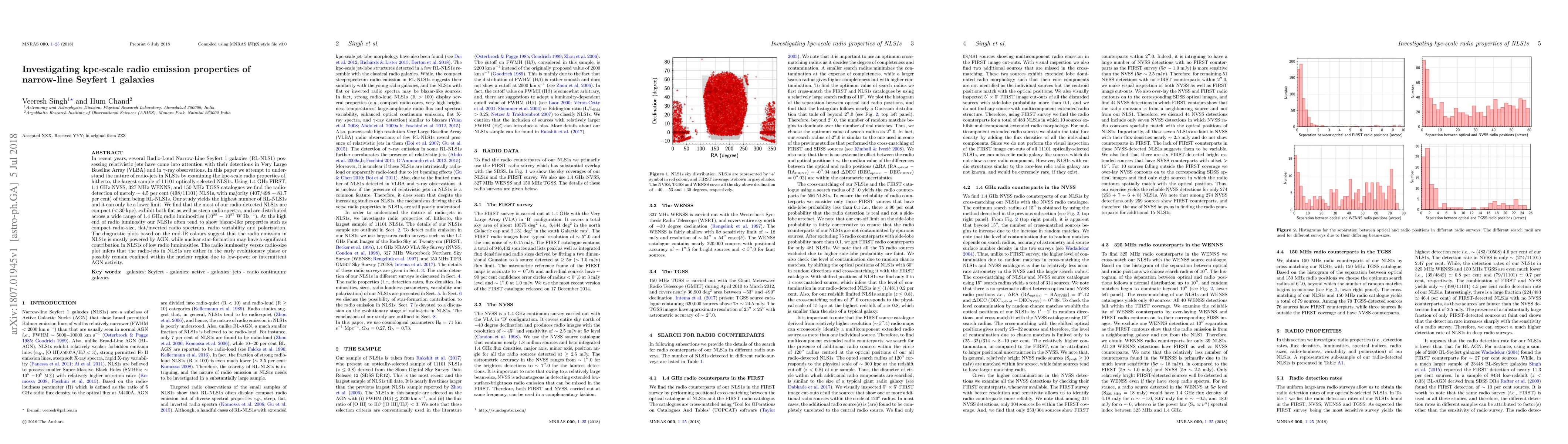 This paper investigates the kpc-scale radio emission properties of Narrow-Line Seyfert 1 (NLS1) galaxies, finding that only about 4.5% of NLS1s are radio-detected, with most being Radio-Loud NLS1s (RL-NLS1s). The study suggests that RL-NLS1s often exhibit blazar-like characteristics, while lower luminosity NLS1s may involve nuclear star-formation in their radio emission.
