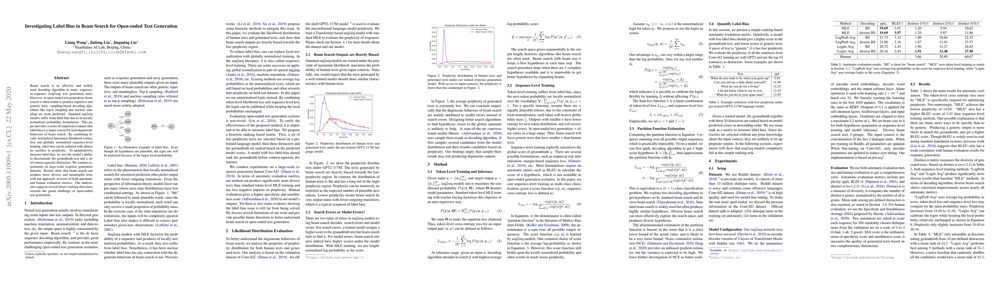 This paper investigates how label bias in beam search contributes to repetitive text generation in open-ended tasks, proposing a hybrid training method that combines local and global normalization to mitigate label bias. Experimental results demonstrate improved text diversity and quality using this approach.