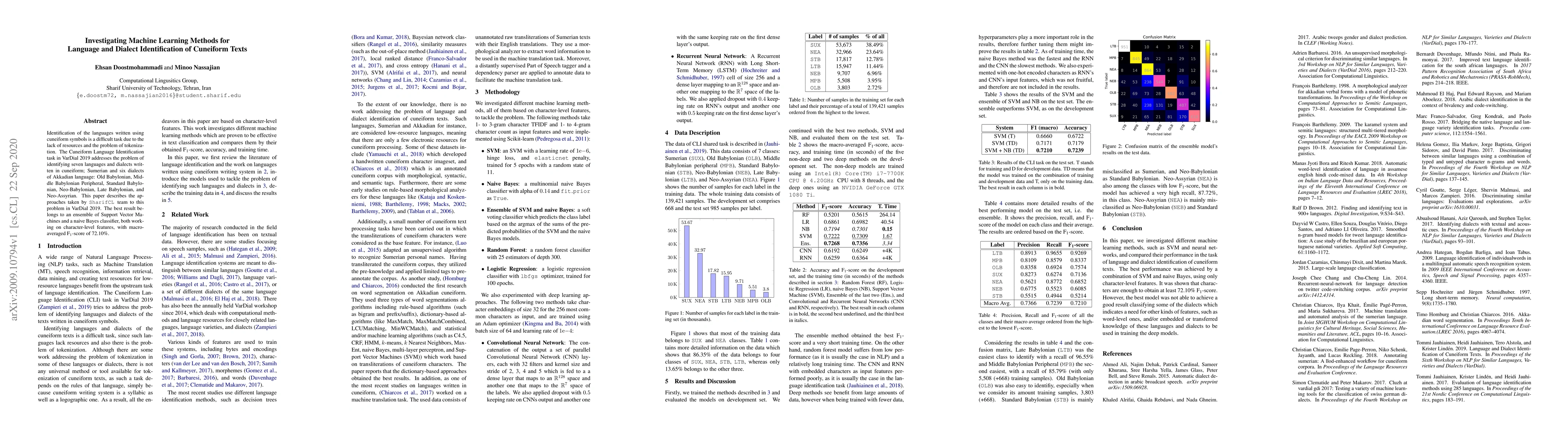 Researchers developed an ensemble model using Support Vector Machines and a naive Bayes classifier to identify cuneiform texts with a macro-averaged F1-score of 72.10% in VarDial 2019.