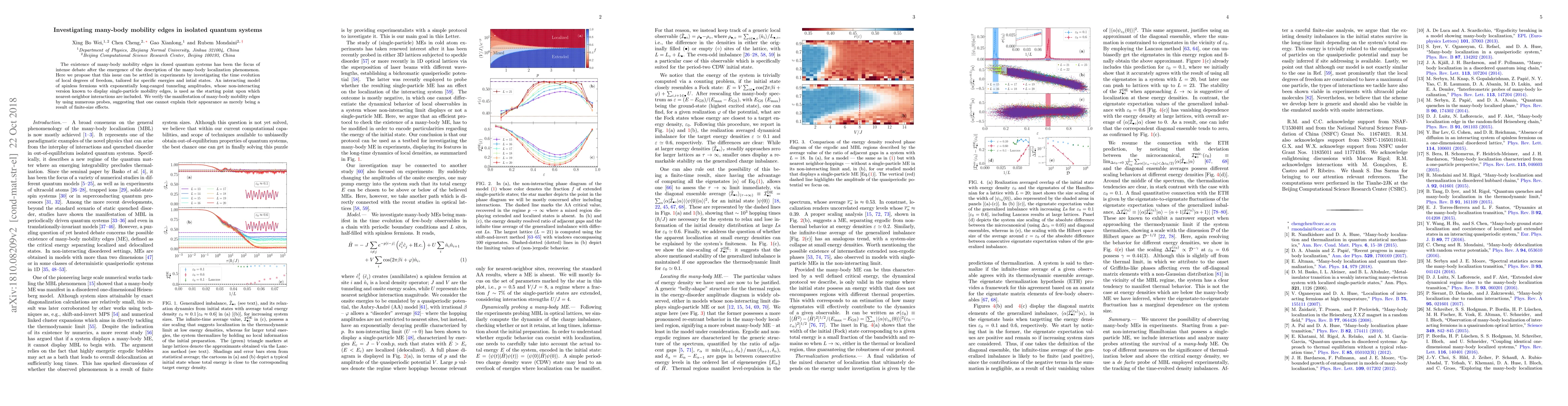 This paper explores the many-body mobility edges in isolated quantum systems, proposing experimental methods to investigate their time evolution. Using an interacting model of spinless fermions with long-ranged tunneling, the authors demonstrate the presence of many-body mobility edges, confirming their existence beyond finite-size effects.