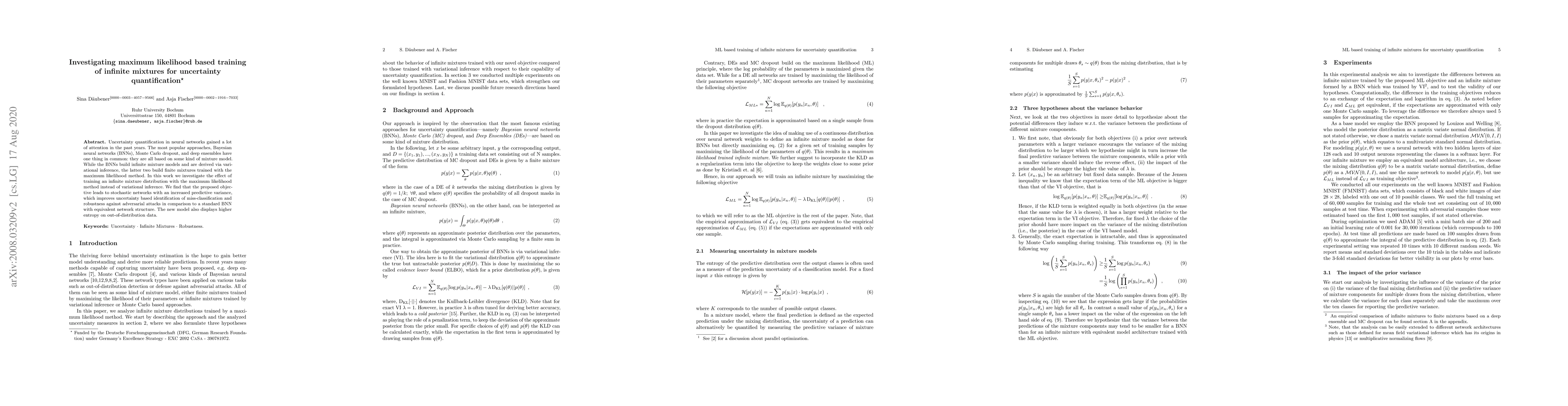 This paper investigates training infinite mixture models for uncertainty quantification in neural networks using maximum likelihood instead of variational inference. The results show improved uncertainty identification and robustness against adversarial attacks compared to traditional Bayesian neural networks.