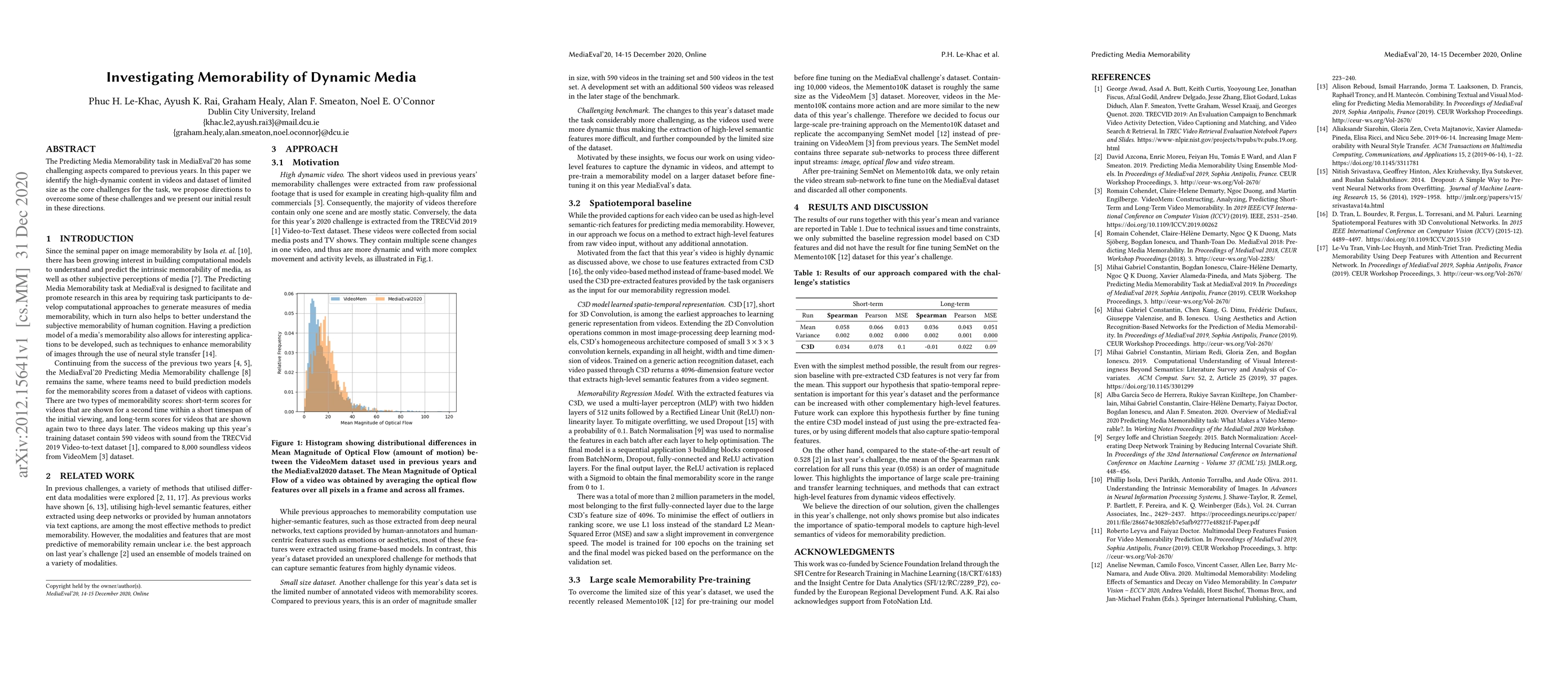 The Predicting Media Memorability task in MediaEval'20 has some challenging aspects compared to previous years. In this paper we identify the high-dynamic content in videos and dataset of limited size as the core challenges for the task, we propose directions to overcome some of these challenges and we present our initial result in these directions.