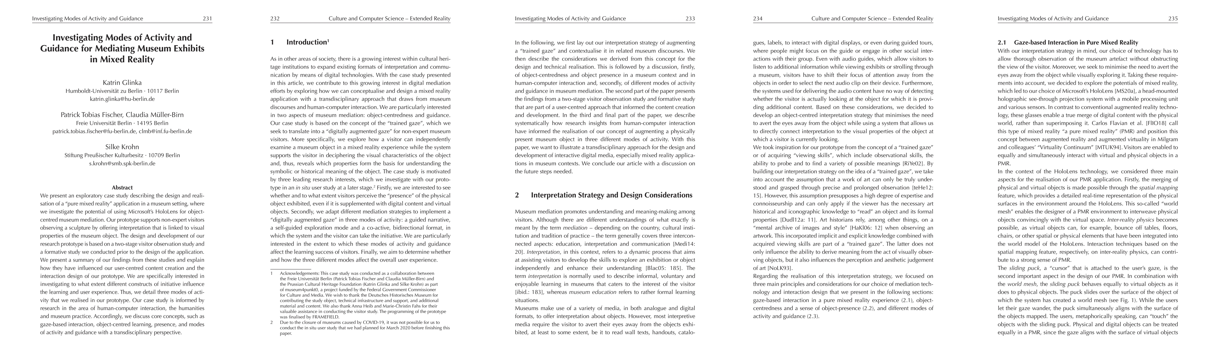 This paper explores the design and realization of a mixed reality application using Microsoft's HoloLens in a museum setting to mediate object-centered learning. The prototype investigates how different modes of activity influence visitor engagement and learning, informed by visitor observation studies and human-computer interaction research.