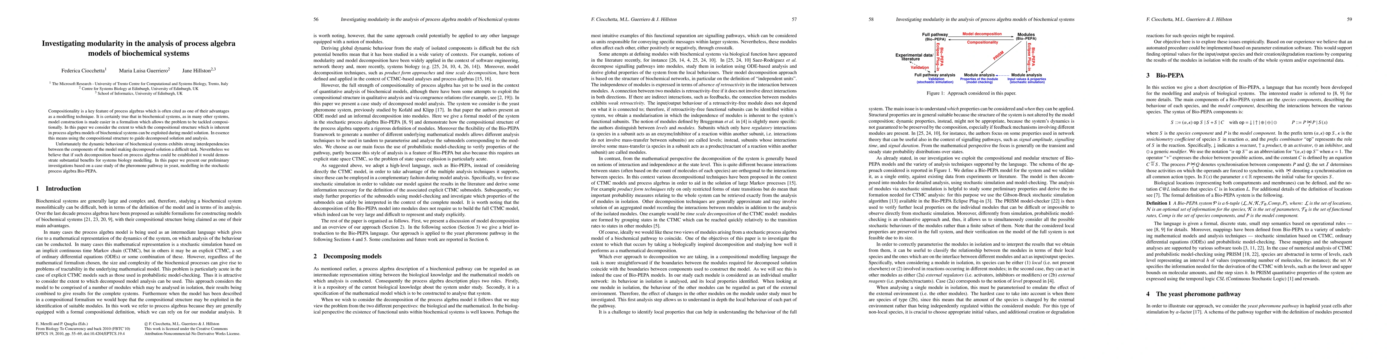 This paper investigates how to leverage the compositional structure of process algebra models for biochemical systems to simplify their analysis. Researchers propose a decomposition approach using Bio-PEPA for modeling the pheromone pathway in yeast and identify its potential benefits for systems biology modeling.