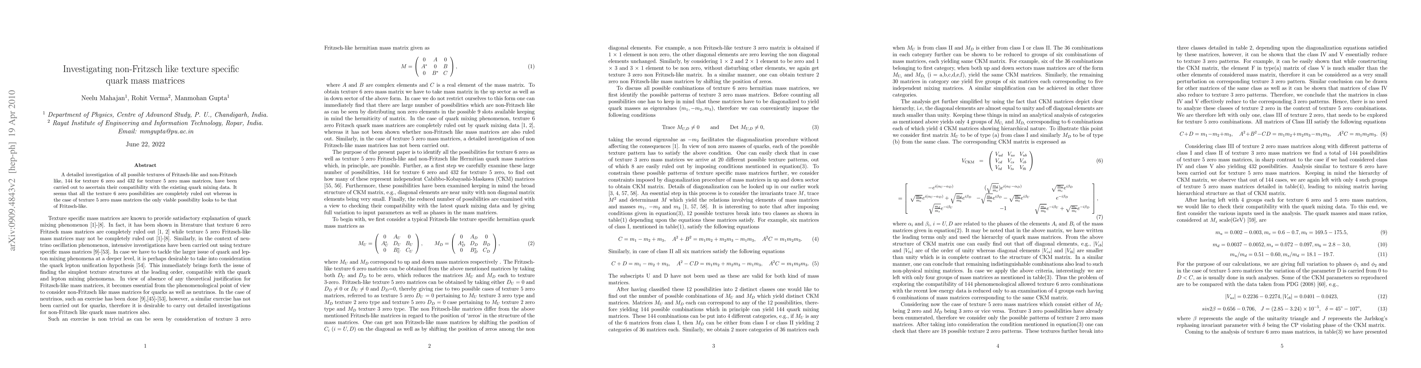 This paper investigates various quark mass matrices, focusing on non-Fritzsch like textures with 5 and 6 zeros, to determine their compatibility with observed quark mixing data. The study finds that all 6-zero textures are incompatible, while 5-zero textures, particularly Fritzsch-like ones, remain the most viable option.