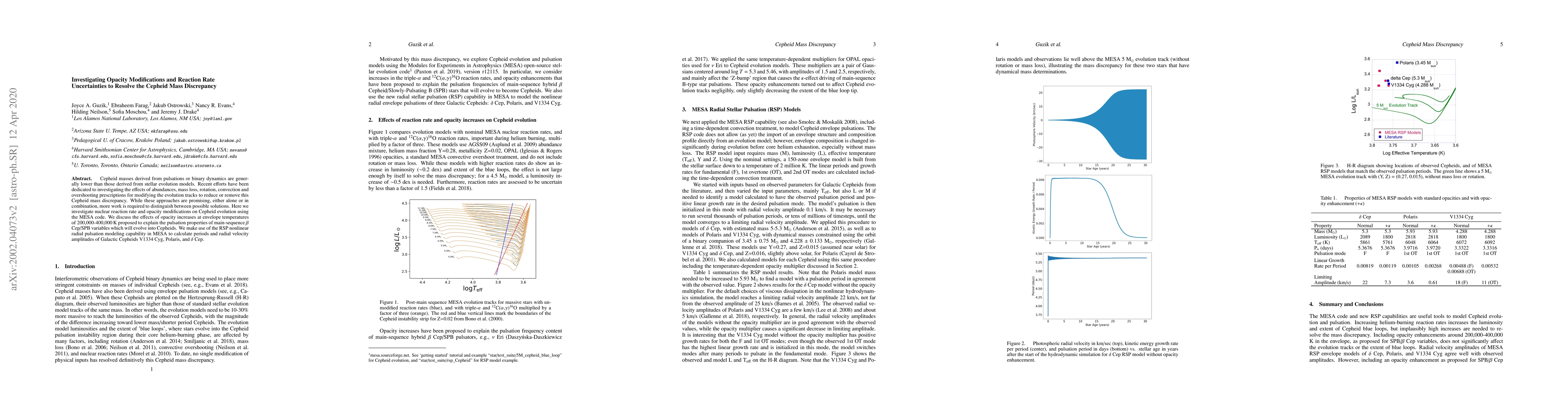 Cepheid masses derived from pulsations or binary dynamics are generally lower than those derived from stellar evolution models. Recent efforts have been dedicated to investigating the effects of abundances, mass loss, rotation, convection and overshooting prescriptions for modifying the evolution tracks to reduce or remove this Cepheid mass discrepancy. While these approaches are promising, either alone or in combination, more work is required to distinguish between possible solutions. Here we investigate nuclear reaction rate and opacity modifications on Cepheid evolution using the MESA code. We discuss the effects of opacity increases at envelope temperatures of 200,000-400,000 K proposed to explain the pulsation properties of hybrid main-sequence beta Cep/Slowly Pulsating B (SPB) variables which will evolve into Cepheids. We make use of the RSP nonlinear radial pulsation modeling capability in MESA to calculate periods and radial velocity amplitudes of Galactic Cepheids V1334 Cyg, Polaris, and delta Cep.