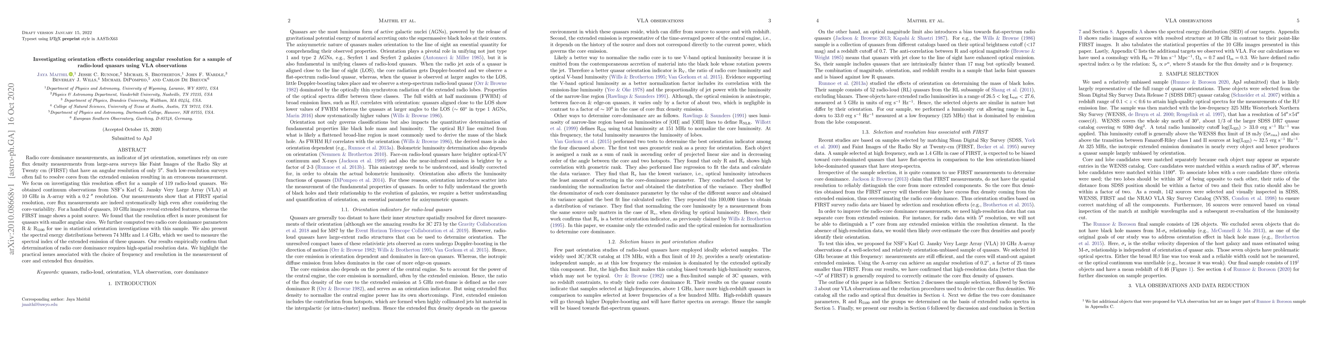 This study investigates the impact of angular resolution on radio core dominance measurements for 119 radio-loud quasars using high-resolution VLA observations. It finds that low-resolution surveys like FIRST often mismeasure core flux densities due to unresolved extended emission, especially in smaller quasars.