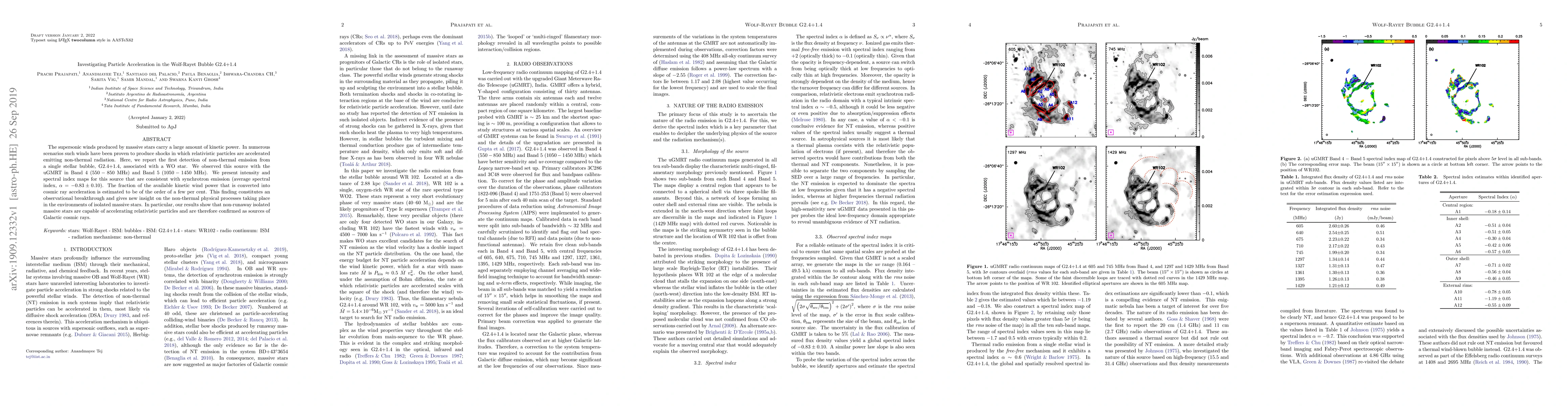 The supersonic winds produced by massive stars carry a large amount of kinetic power. In numerous scenarios such winds have been proven to produce shocks in which relativistic particles are accelerated emitting non-thermal radiation. Here, we report the first detection of non-thermal emission from a single stellar bubble, G2.4+1.4, associated with a WO star. We observed this source with the uGMRT in Band 4 ($550-850$ MHz) and Band 5 ($1050-1450$ MHz). We present intensity and spectral index maps for this source that are consistent with synchrotron emission (average spectral index, $\alpha = -0.83 \pm 0.10$). The fraction of the available kinetic wind power that is converted into cosmic ray acceleration is estimated to be of the order of a few per cent. This finding constitutes an observational breakthrough and gives new insight on the non-thermal physical processes taking place in the environments of isolated massive stars. In particular, our results show that non-runaway isolated massive stars are capable of accelerating relativistic particles and are therefore confirmed as sources of Galactic cosmic rays.