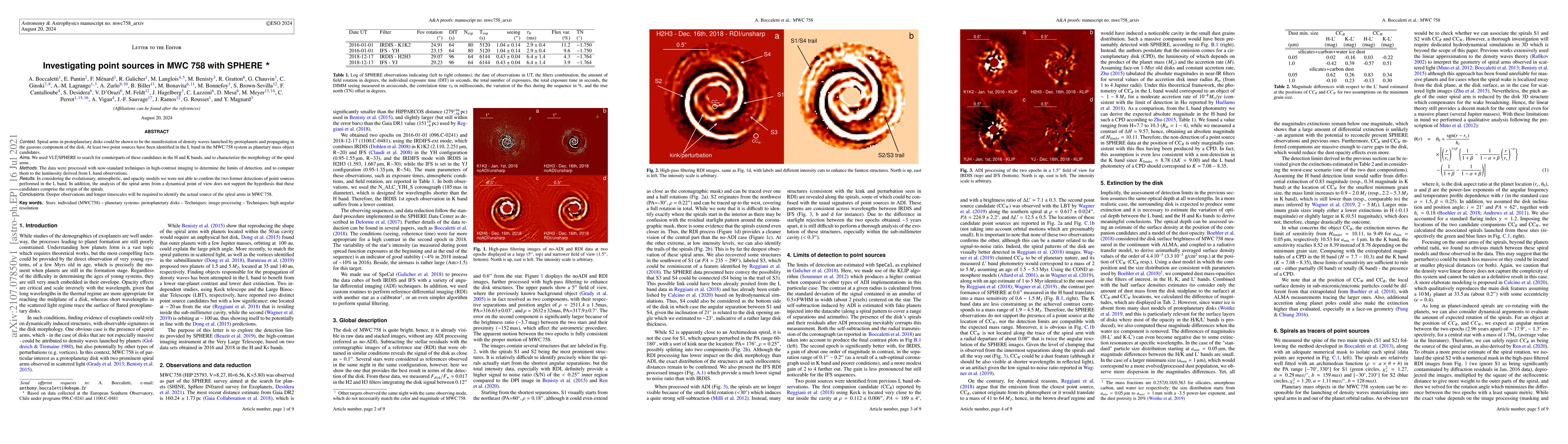 This study using VLT/SPHERE found no confirmation of previously detected point sources in MWC 758, suggesting that the spiral arms may not originate from the previously proposed planetary mass objects. Further observations over longer periods are needed to determine the true source of the spiral arms.