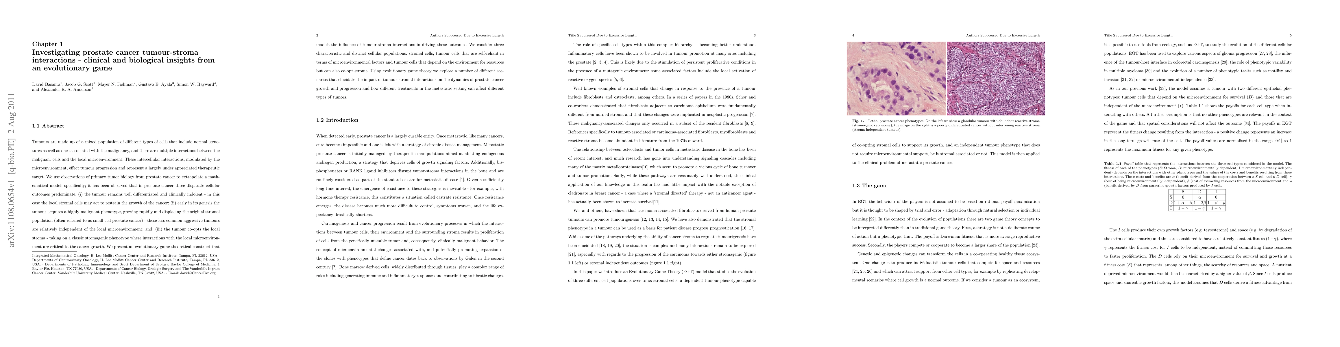 This paper develops an evolutionary game theoretical model to investigate prostate cancer tumour-stroma interactions, identifying three distinct cellular outcomes: well-differentiated, aggressive, and stroma-dependent tumours. The study explores how these interactions influence cancer progression and the effectiveness of different treatments.