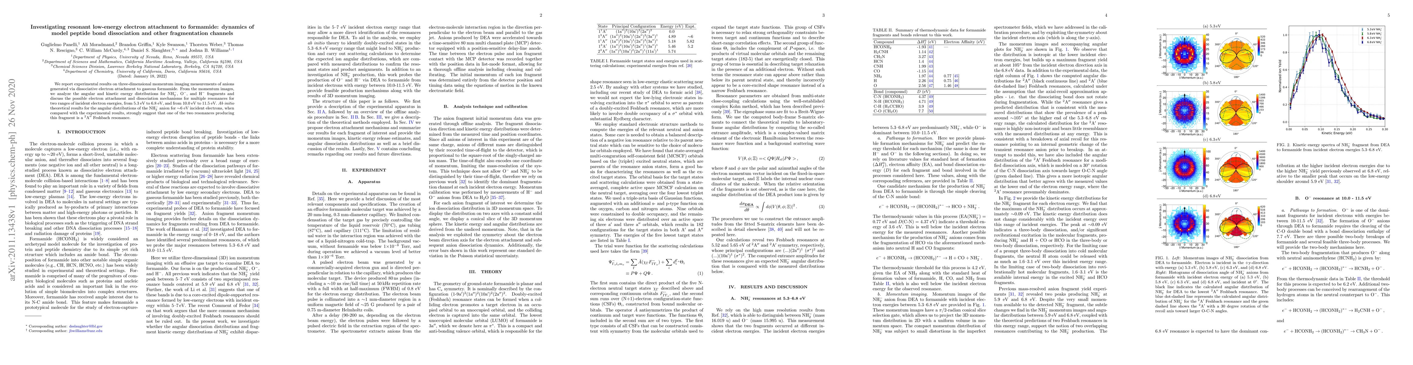 Researchers investigated electron attachment to formamide, observing resonant low-energy collisions that produce fragments such as NH2- and O-. Their findings suggest a previously unknown Feshbach resonance at around 6 eV.