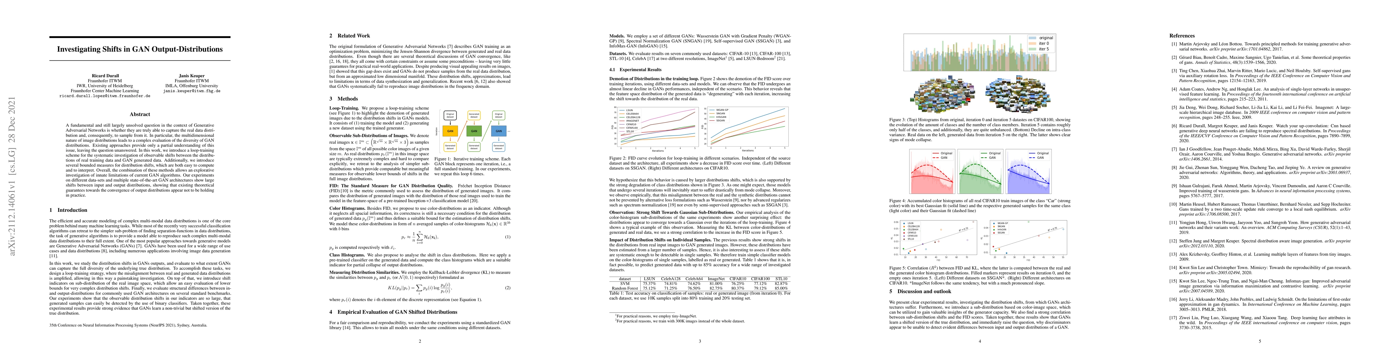 A fundamental and still largely unsolved question in the context of Generative Adversarial Networks is whether they are truly able to capture the real data distribution and, consequently, to sample from it. In particular, the multidimensional nature of image distributions leads to a complex evaluation of the diversity of GAN distributions. Existing approaches provide only a partial understanding of this issue, leaving the question unanswered. In this work, we introduce a loop-training scheme for the systematic investigation of observable shifts between the distributions of real training data and GAN generated data. Additionally, we introduce several bounded measures for distribution shifts, which are both easy to compute and to interpret. Overall, the combination of these methods allows an explorative investigation of innate limitations of current GAN algorithms. Our experiments on different data-sets and multiple state-of-the-art GAN architectures show large shifts between input and output distributions, showing that existing theoretical guarantees towards the convergence of output distributions appear not to be holding in practice.