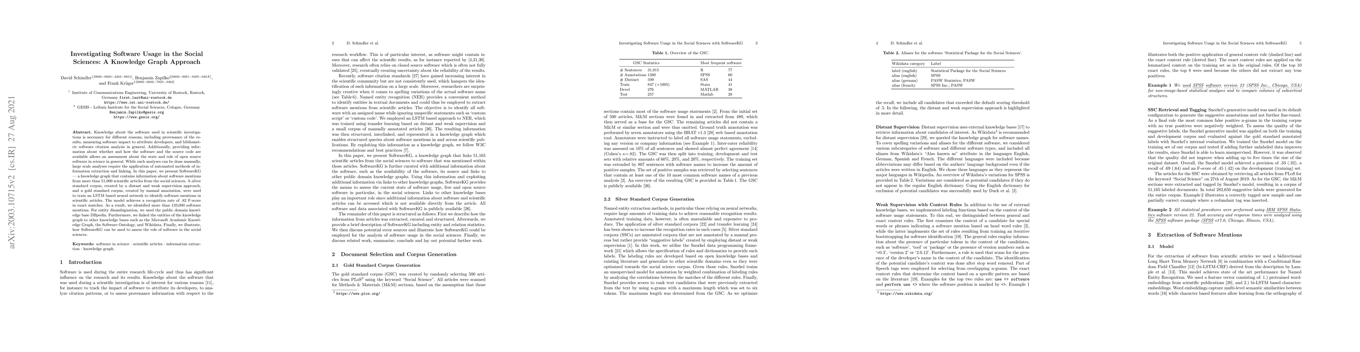 This paper introduces SoftwareKG, a knowledge graph containing software mentions from over 51,000 social science articles, identified using an LSTM-based neural network trained on both silver and gold standard corpora. The graph links software entities to other knowledge bases to assess software's role in social sciences.