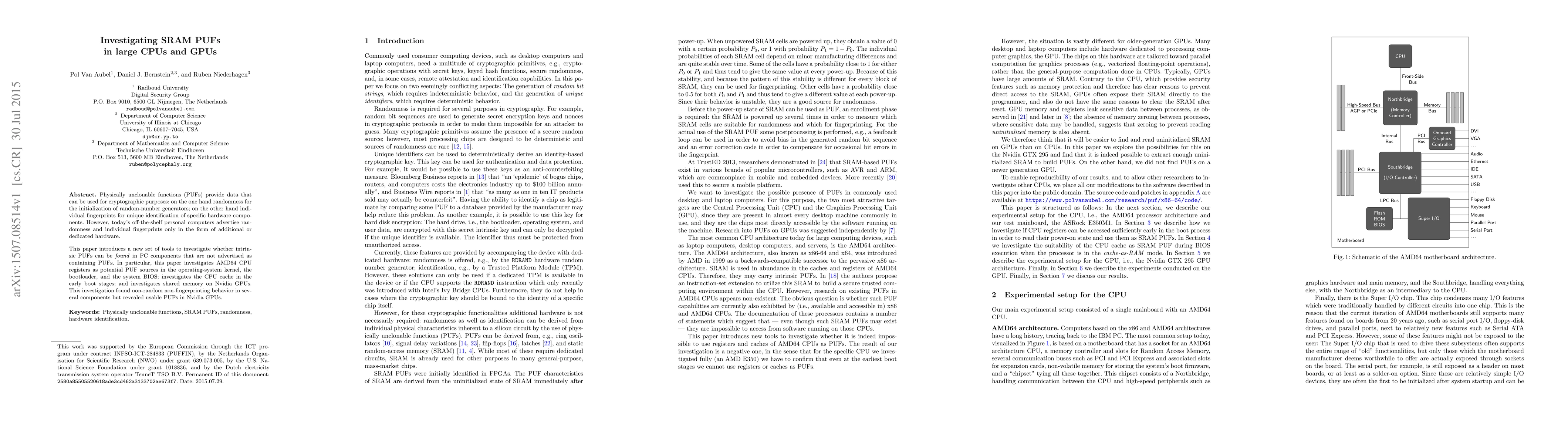 Researchers found usable Physically Unclonable Functions (PUFs) in Nvidia GPUs but not in AMD64 CPU registers or shared memory on GPUs. This discovery could enable secure data storage and cryptographic applications in personal computers.