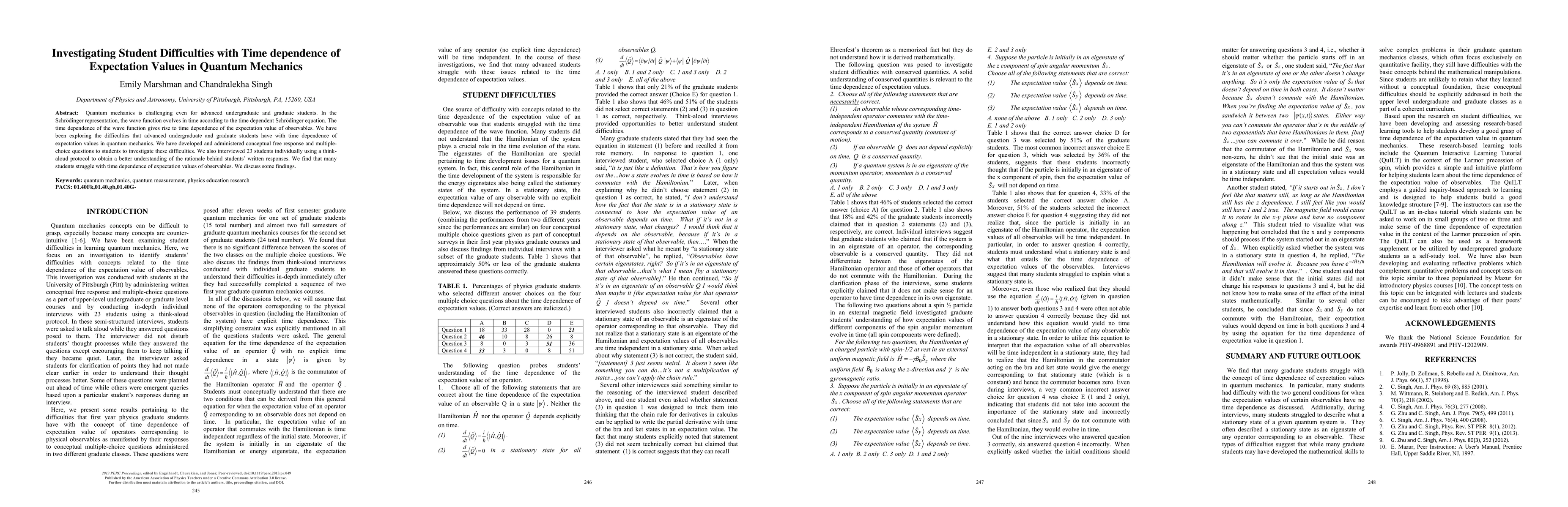 This study investigates advanced undergraduate and graduate students' difficulties with the time dependence of expectation values in quantum mechanics, using conceptual questions and interviews. Findings reveal significant challenges in understanding this concept, highlighting the need for improved teaching strategies.