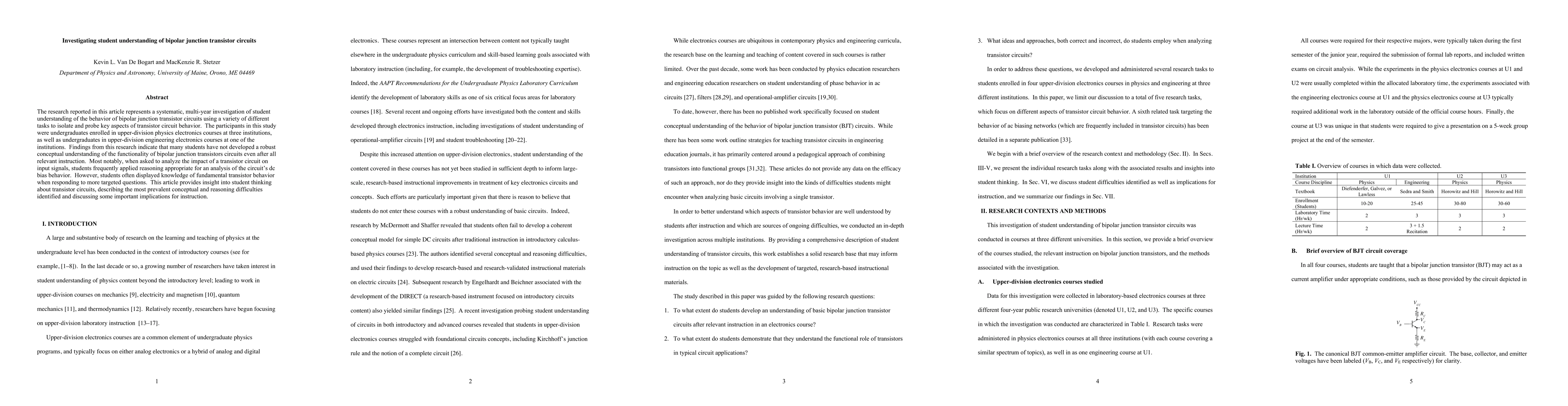 This study investigates undergraduate students' understanding of bipolar junction transistor circuits, revealing that despite instruction, many students struggle with conceptualizing and analyzing the circuits' behavior, often applying incorrect reasoning. The research highlights prevalent misconceptions and offers implications for improving instructional strategies.