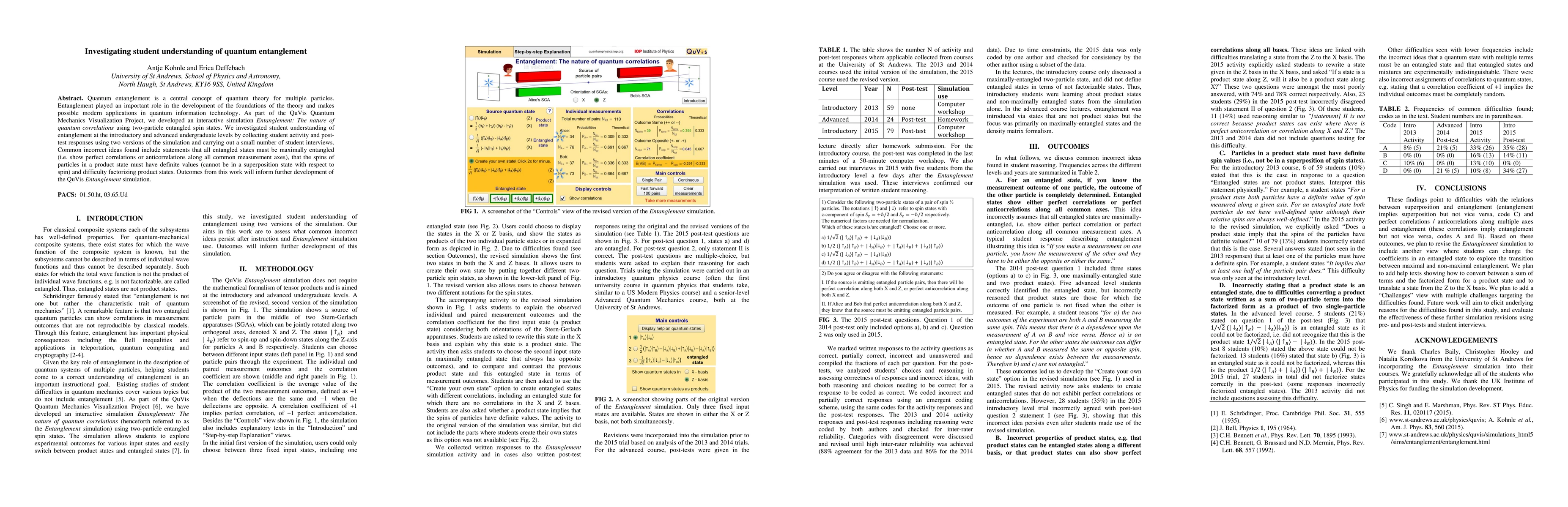 This study explores student understanding of quantum entanglement through an interactive simulation, revealing common misconceptions such as the belief that all entangled states must be maximally entangled and that product states imply definite spin values. The findings will guide enhancements to the simulation for better conceptual clarity.