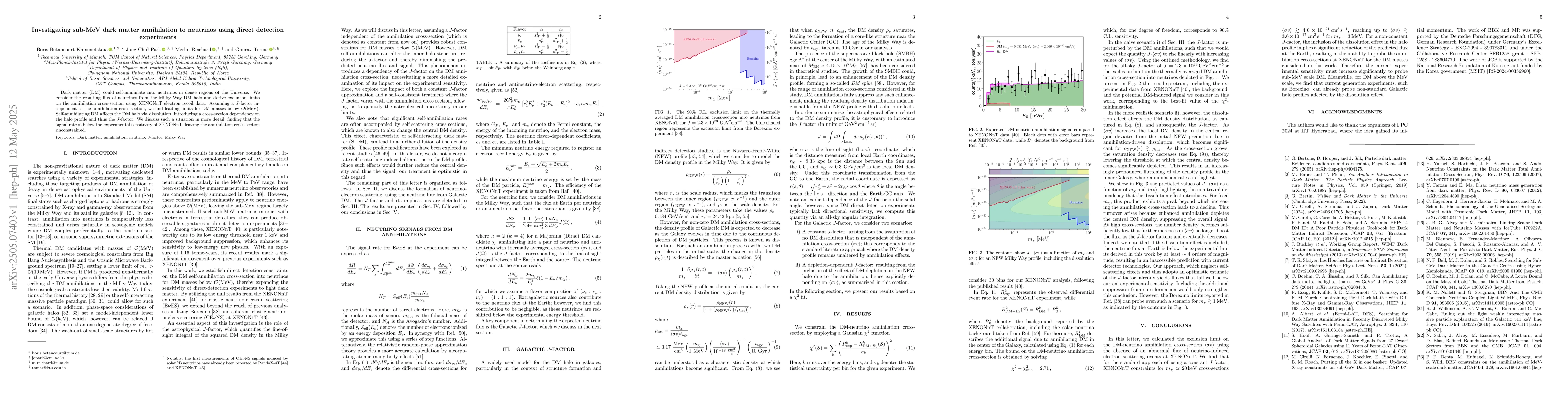 The paper presents a novel approach to constraining sub-MeV DM annihilation cross-sections using direct detection data, specifically XENONnT electron recoil events, and analyzing the implications for the DM halo profile.