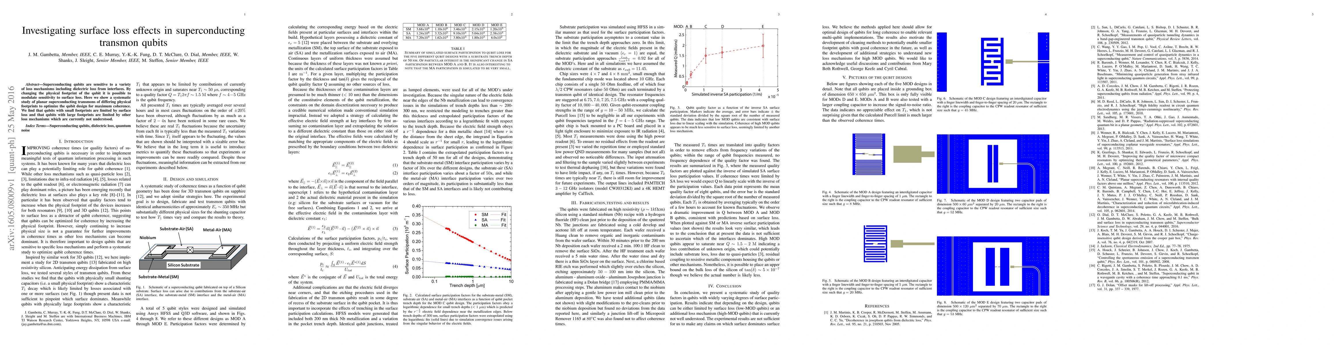 This study investigates how varying the physical footprint of superconducting transmon qubits affects surface loss and coherence. The research finds that smaller qubits are constrained by surface loss, while larger qubits face other, currently unidentified loss mechanisms.