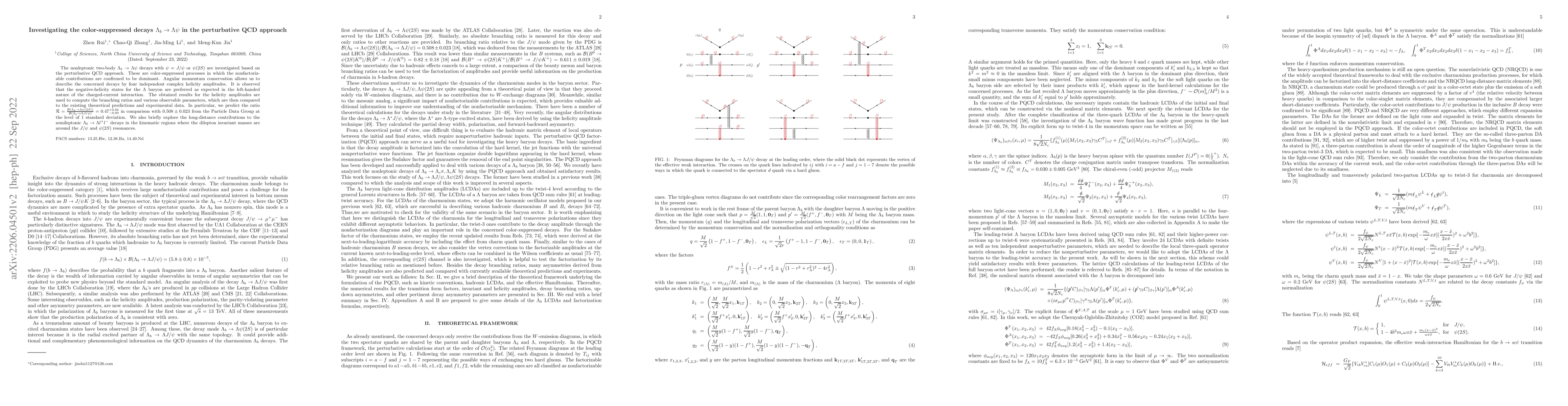 This paper investigates the color-suppressed $\Lambda_b\rightarrow \Lambda\psi$ decays using the perturbative QCD approach, finding that nonfactorizable contributions dominate. The study predicts the ratio $\mathcal{R}=0.47^{+0.02}_{-0.00}$ for the branching fractions of $\Lambda\psi(2S)$ versus $\Lambda J/\psi$, in close agreement with experimental data.