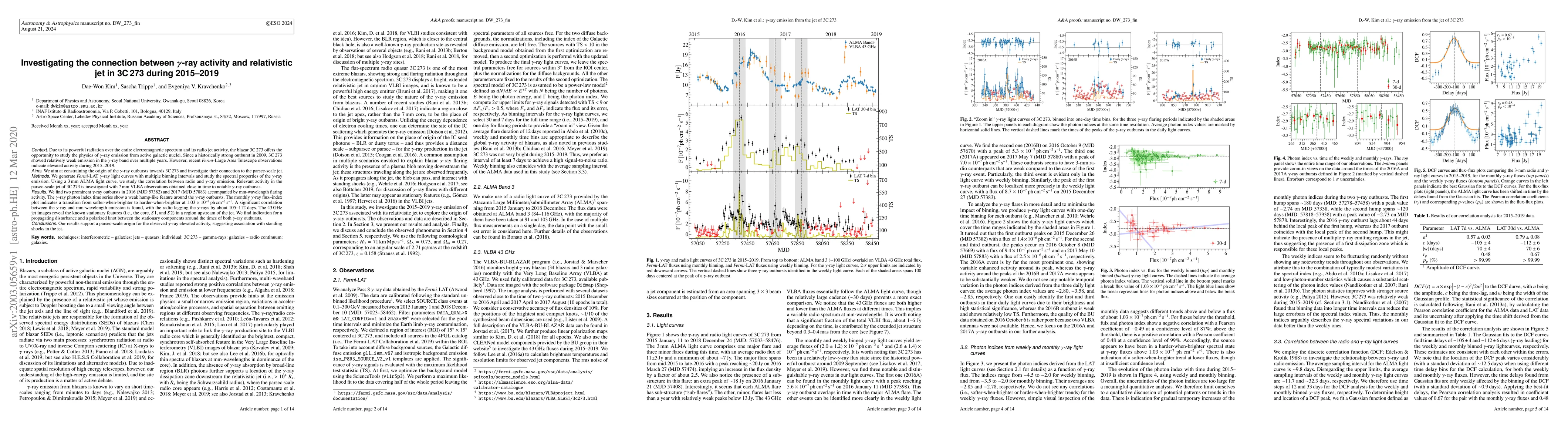 Researchers investigated gamma-ray activity in blazar 3C273 from 2015-2019, finding a connection between gamma-ray outbursts and mm-wavelength flaring activity, with the radio lagging the gamma-rays by about 105-112 days.