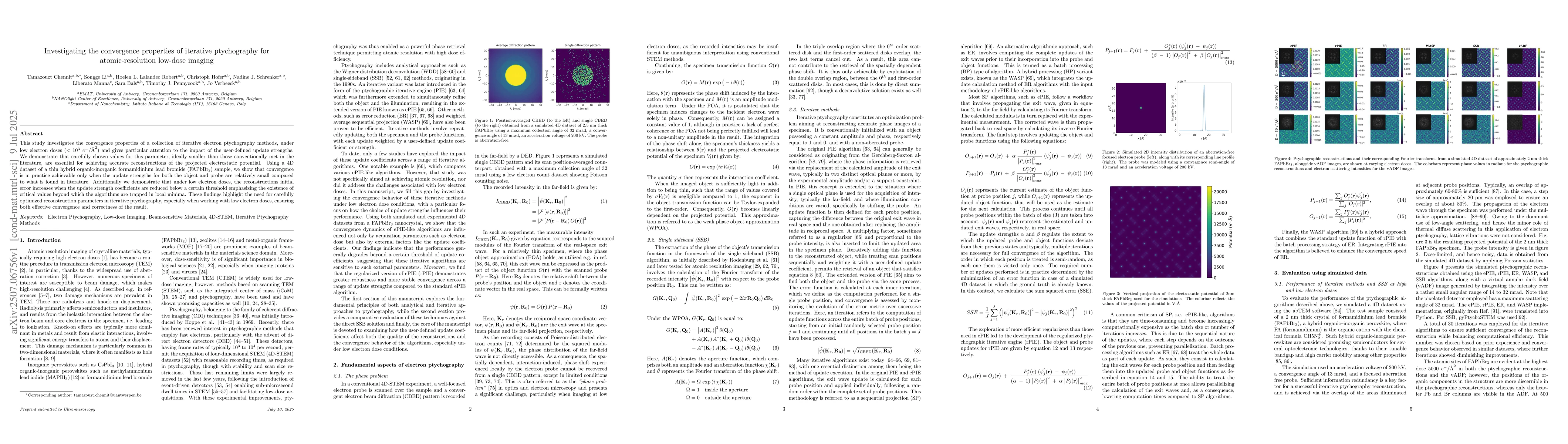 This study investigates the convergence properties of a collection of iterative electron ptychography methods, under low electron doses ($<$ 10$^3$ $e^-/A^2$) and gives particular attention to the impact of the user-defined update strengths. We demonstrate that carefully chosen values for this parameter, ideally smaller than those conventionally met in the literature, are essential for achieving accurate reconstructions of the projected electrostatic potential. Using a 4D dataset of a thin hybrid organic-inorganic formamidinium lead bromide (FAPbBr$_{3}$) sample, we show that convergence is in practice achievable only when the update strengths for both the object and probe are relatively small compared to what is found in literature. Additionally we demonstrate that under low electron doses, the reconstructions initial error increases when the update strength coefficients are reduced below a certain threshold emphasizing the existence of critical values beyond which the algorithms are trapped in local minima. These findings highlight the need for carefully optimized reconstruction parameters in iterative ptychography, especially when working with low electron doses, ensuring both effective convergence and correctness of the result.