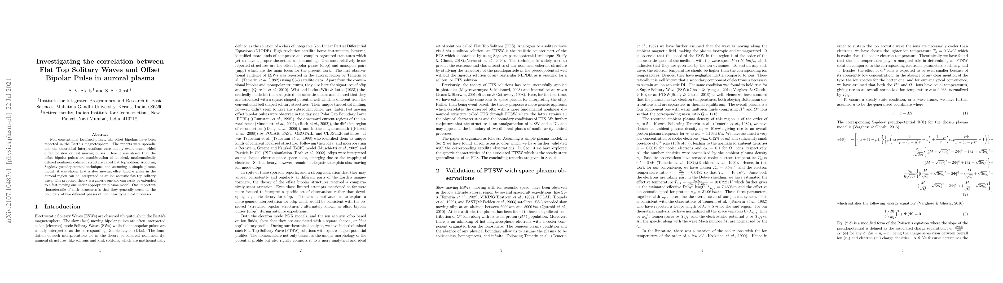 Non conventional localized pulses, like offset bipolars have been reported in the Earths magnetosphere. The reports were sporadic and the theoretical interpretations were mainly event based which differ for slow or fast moving pulses. Here it was shown that the offset bipolar pulses are manifestations of an ideal, mathematically defined nonlinear coherent structure called a flat top soliton. Adopting Sagdeev pseudopotential technique, and assuming a simple plasma model, it was shown that a slow moving offset bipolar pulse in the auroral region can be interpreted as an ion acoustic flat top solitary wave. The proposed theory is a generic one and can easily be extended to a fast moving one under an appropriate plasma model. One important characteristic of such structures is that they generally occur at the boundary of two different phases of nonlinear dynamical processes.