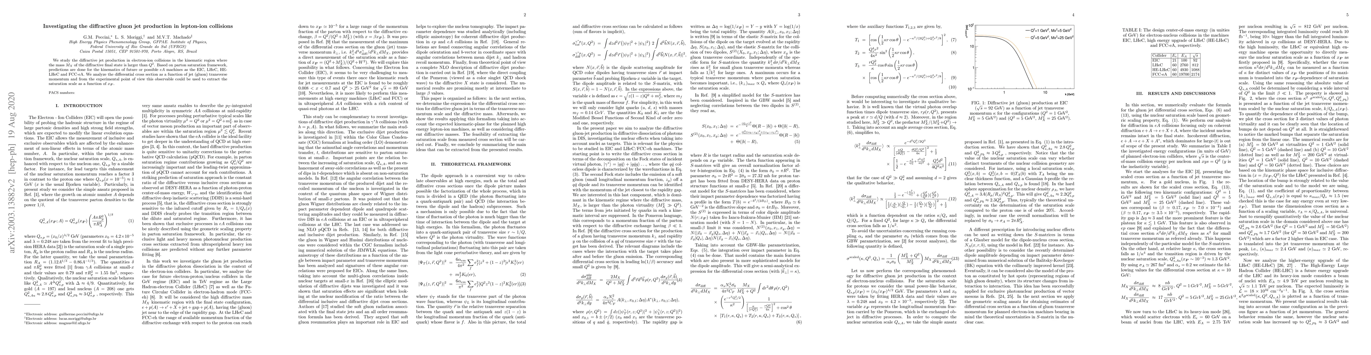 Researchers investigate diffractive gluon jet production in electron-ion collisions, focusing on kinematical regions where the mass of the diffractive final state is larger than Q^2. They analyze differential cross sections to extract the saturation scale as a function of x_{I ext{P}}.