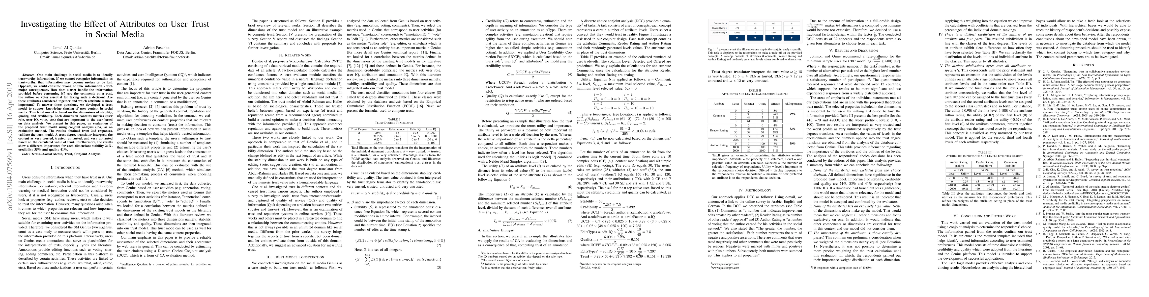 This paper investigates how various attributes influence user trust in social media content, proposing a trust model based on stability, quality, and credibility. The model's effectiveness is validated through conjoint analysis, revealing that quality is the most important attribute, followed by credibility and stability.