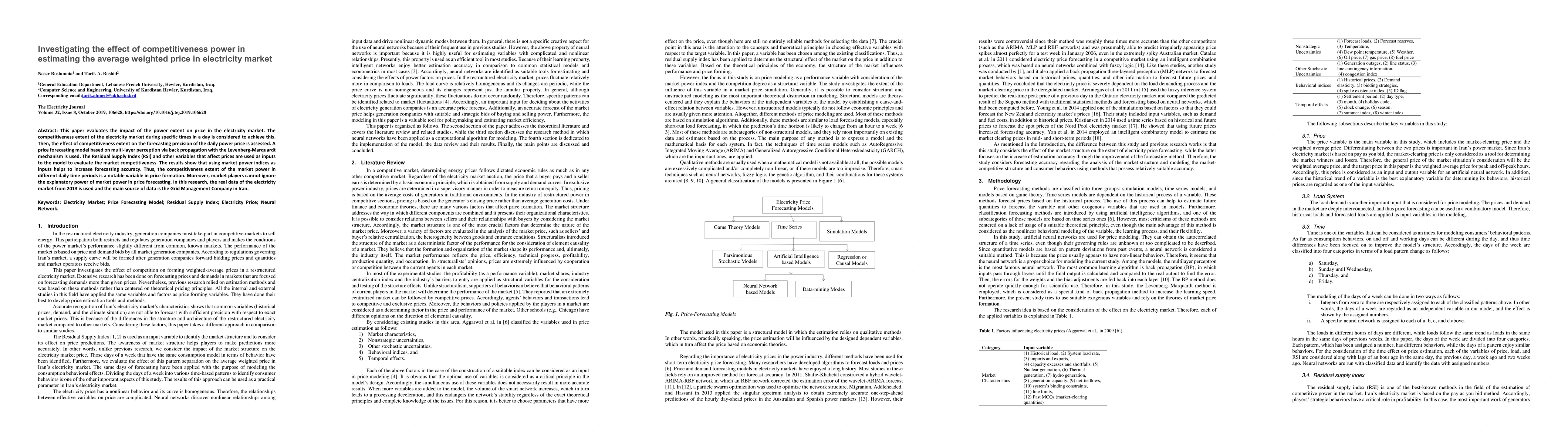 This paper evaluates how the extent of market power influences the average weighted price in the electricity market, using a multi-layer perception model with back propagation and the Levenberg-Marquardt mechanism. Results indicate that incorporating market power indices enhances the accuracy of daily price forecasts, underscoring the significance of market competitiveness in price formation.