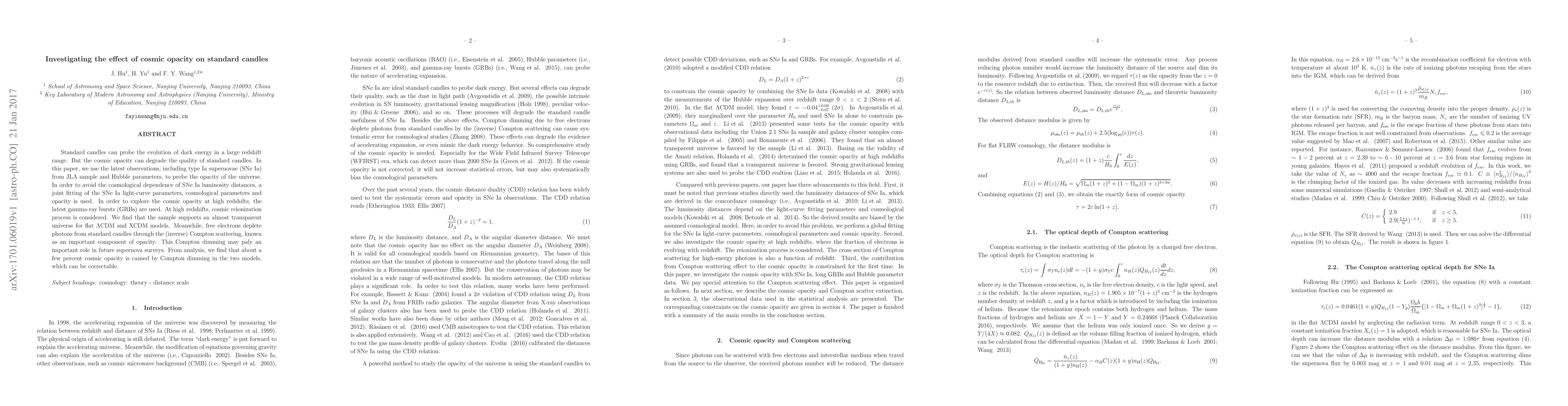Standard candles can probe the evolution of dark energy in a large redshift range. But the cosmic opacity can degrade the quality of standard candles. In this paper, we use the latest observations, including type Ia supernovae (SNe Ia) from JLA sample and Hubble parameters, to probe the opacity of the universe. In order to avoid the cosmological dependence of SNe Ia luminosity distances, a joint fitting of the SNe Ia light-curve parameters, cosmological parameters and opacity is used. In order to explore the cosmic opacity at high redshifts, the latest gamma-ray bursts (GRBs) are used. At high redshifts, cosmic reionization process is considered. We find that the sample supports an almost transparent universe for flat $\Lambda$CDM and XCDM models. Meanwhile, free electrons deplete photons from standard candles through the (inverse) Compton scattering, known as an important component of opacity. This Compton dimming may paly an important role in future supernova surveys. From analysis, we find that about a few percent cosmic opacity is caused by Compton dimming in the two models, which can be correctable.