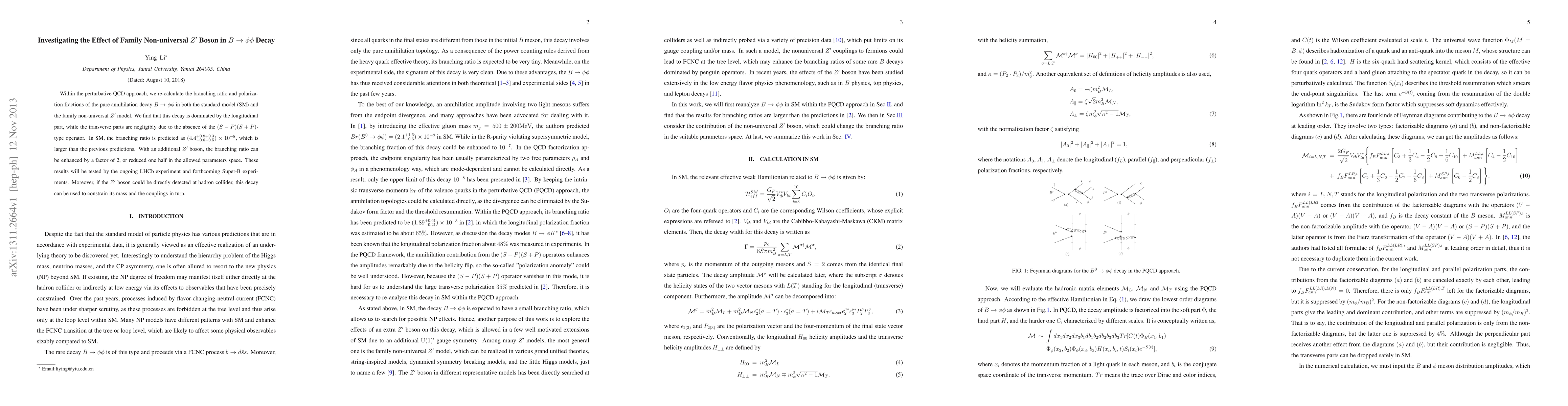 This paper recalculates the branching ratio and polarization fractions for the $B \to \phi \phi$ decay under the standard model and a family non-universal $Z^\prime$ model, finding that the decay is mainly longitudinal. The branching ratio in the SM is larger than previous predictions, and the $Z^\prime$ boson can either enhance or reduce this ratio depending on its parameters.