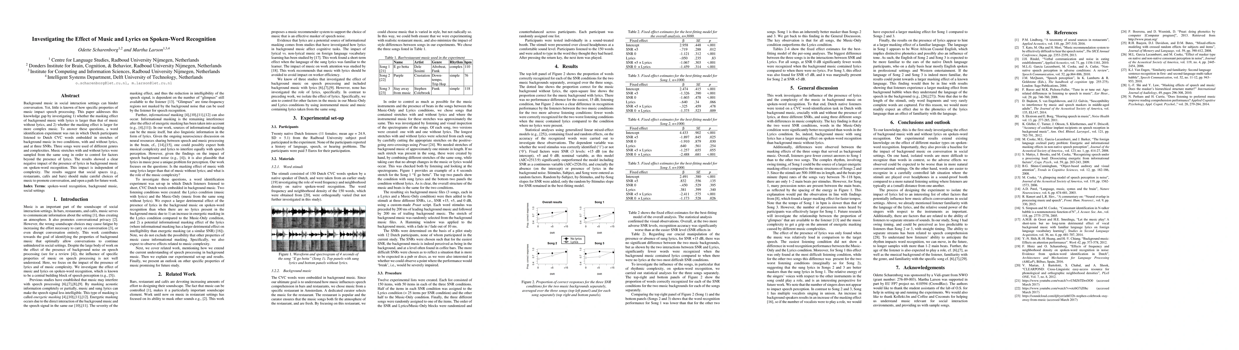 This study investigates how background music with lyrics negatively impacts spoken-word recognition compared to music without lyrics, regardless of complexity. Findings suggest that social spaces should consider music selection to enhance conversation.